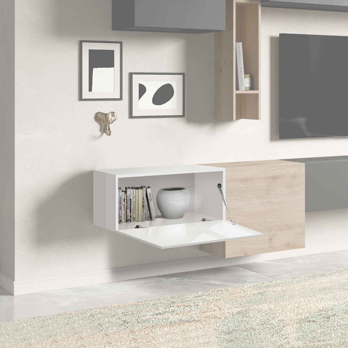 Il pensile orizzontale presenta un'anta battente, è possibile desidere in fase di montaggio l'apertura a ribalta o vasistas. La finitura proposta è Bianco lucido. Aggiungi altri elementi al tuo soggiorno oppure vedi tutta la collezione Logica.
