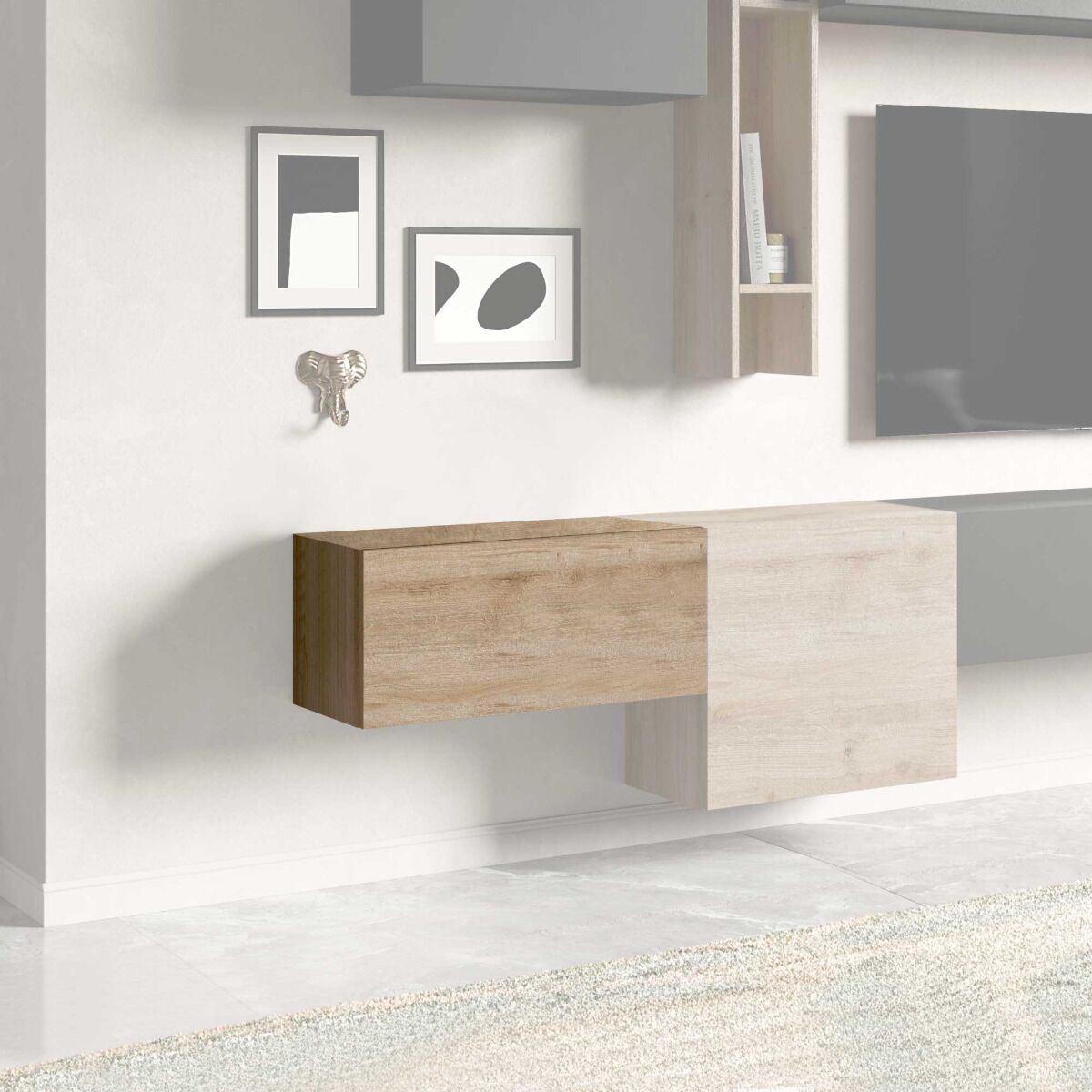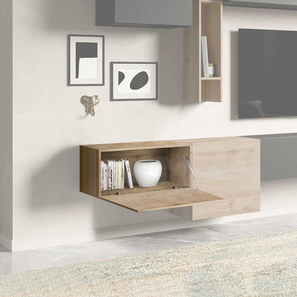 Elemento orizzontale sospeso piccolo ad un'anta per parete attrezzata, proposto in finitura Cadiz, disponibile in altre 9 colorazioni.