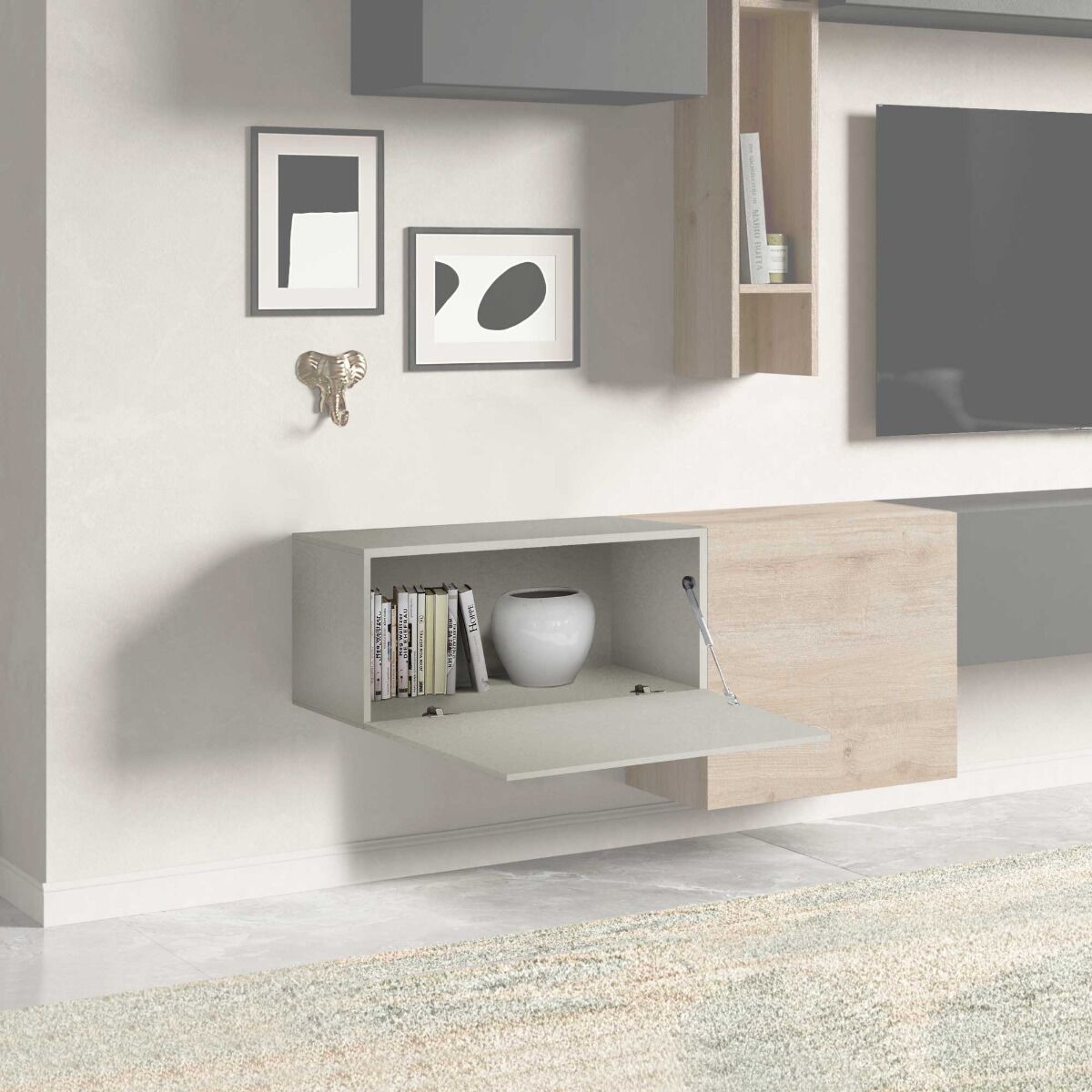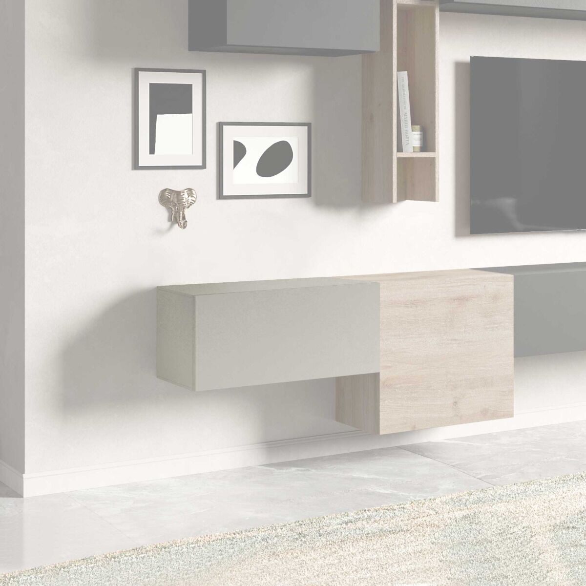 Elemento orizzontale sospeso piccolo ad un'anta per parete attrezzata, proposto in finitura Gesso, disponibile in altre 9 colorazioni.