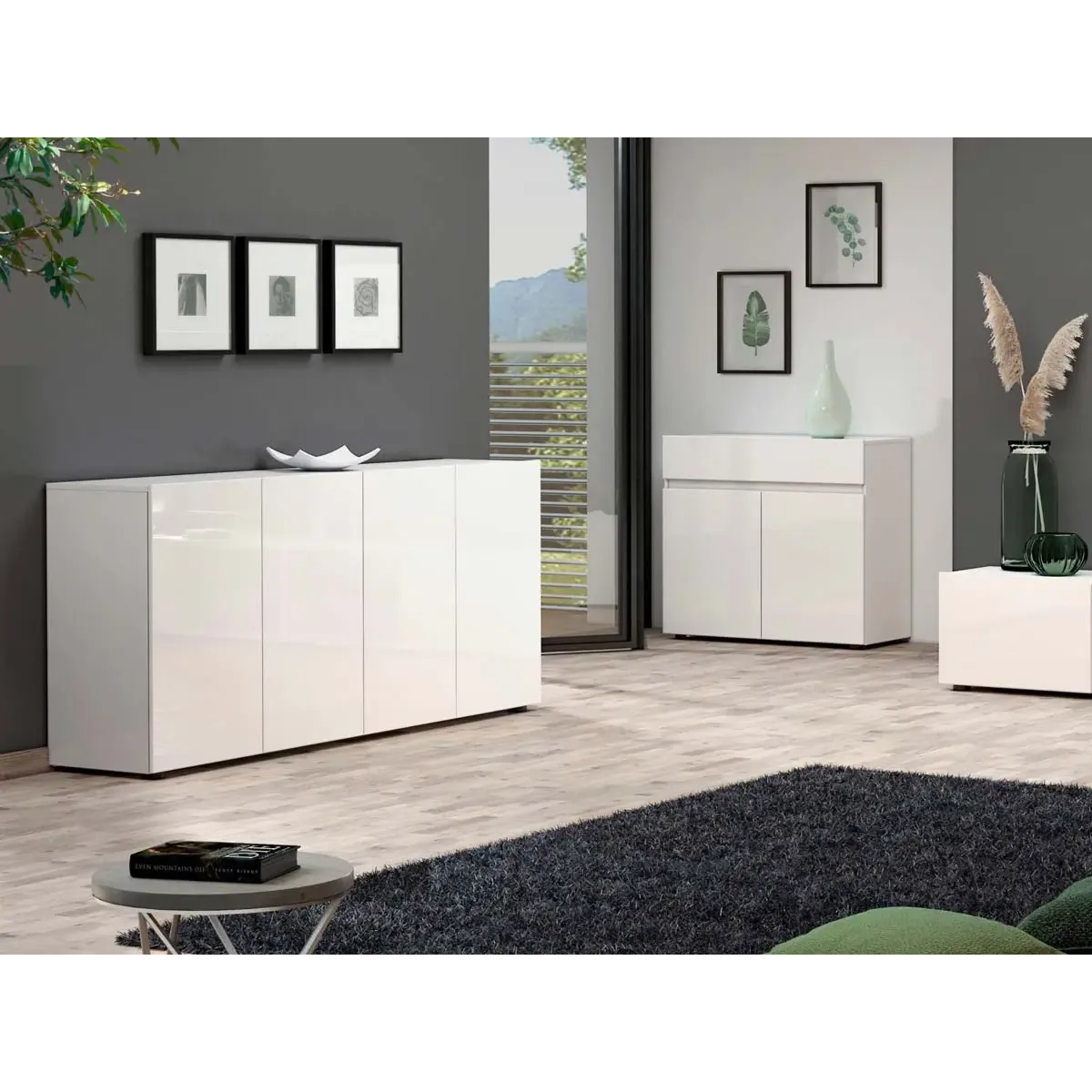 Il suo design moderno ed elegante rende questa credenza con quattro ante perfetta per essere posizionata in un ambiente moderno e luminoso come una sala da pranzo, un ufficio oppure all'ingresso.