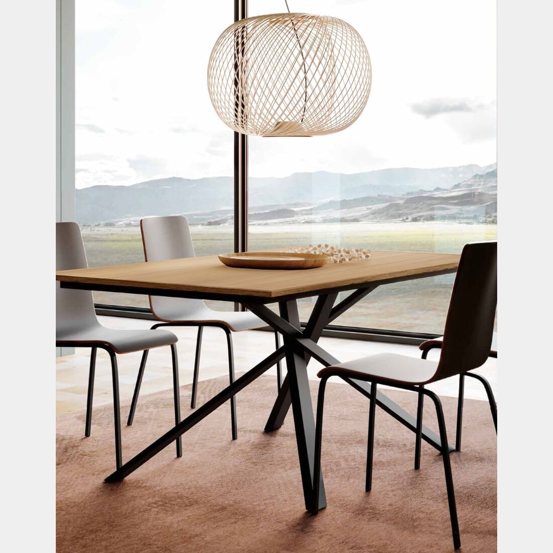 Tavolo noce biondo dalle linee geometriche e moderne, caratterizzato dal bellissimo basamento geometrico molto raffinato. Un tavolo perfetto per rendere la vostra zona living di tendenza. Il tavolo viene fornito con un allungo laterale di 50 cm ed è disponibile in diversi colori.