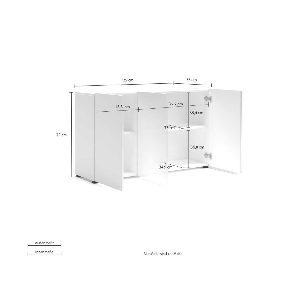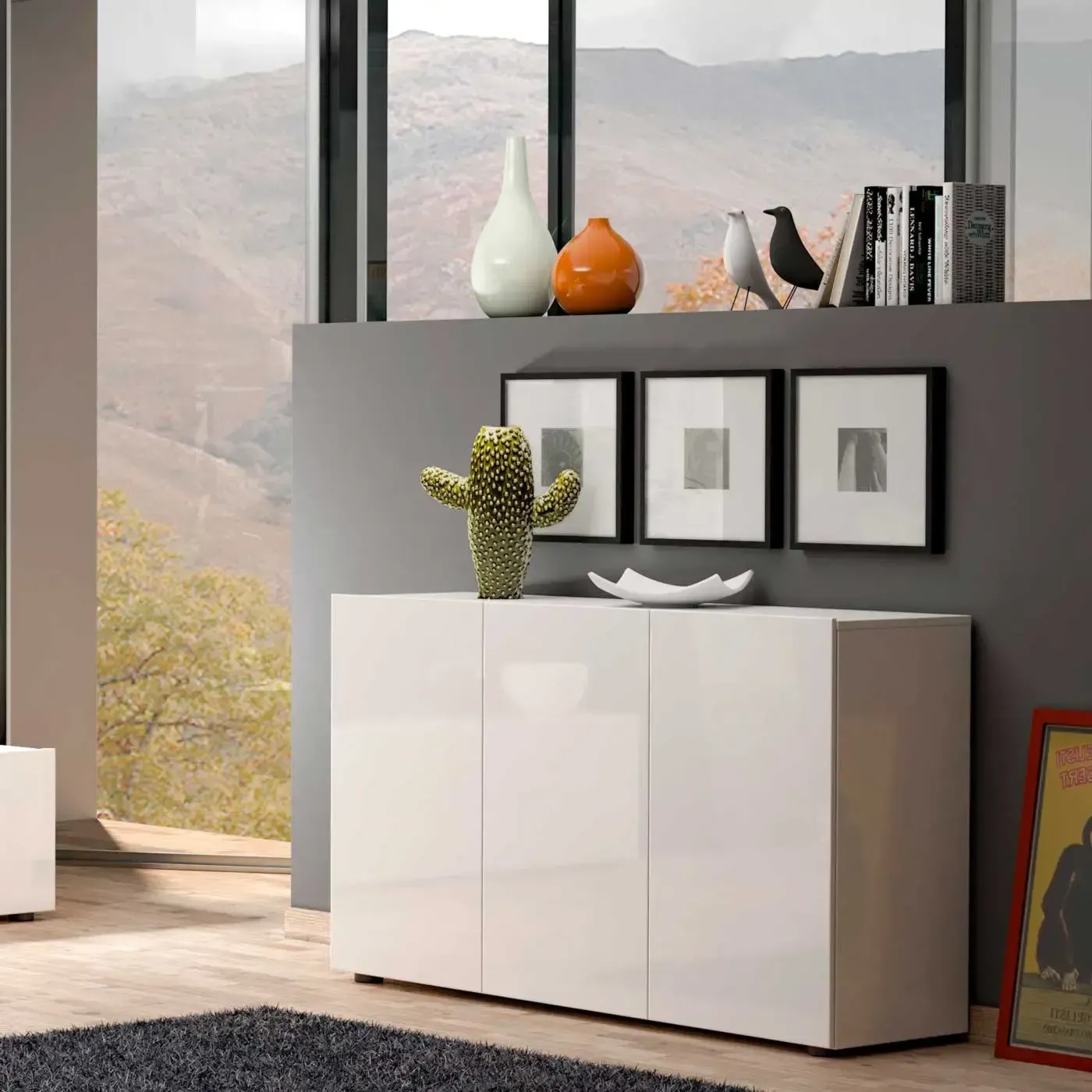 Madia moderna di design utilizzabile come mobile da soggiorno o da ingresso dotata di tre ante Bianco lucido.