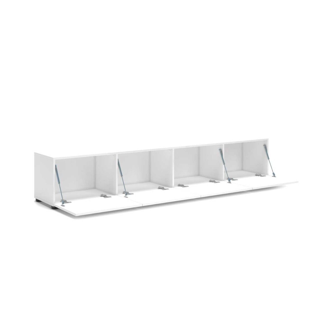 All'interno delle ante ribalta del Porta tv moderno è possibile contenere piccoli oggetti. Il vano a giorno è utile per disporre un lettore DVD o una consolle.