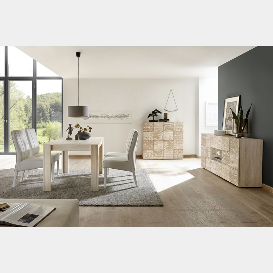 Sala completa di tavolo, 1 madia con 2 cassetti e 1 madia 2 ante in rovere serigrafato