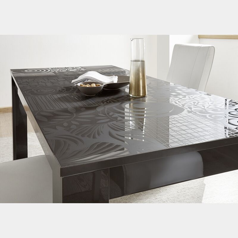- Tavolo moderno di design, robusto ed impatto color grigio. Il tavolo è lungo 180 cm e prevede un'allunga come OPTIONAL. I posti tavola sono 6 e tutto il piano del tavolo è serigrafato.
