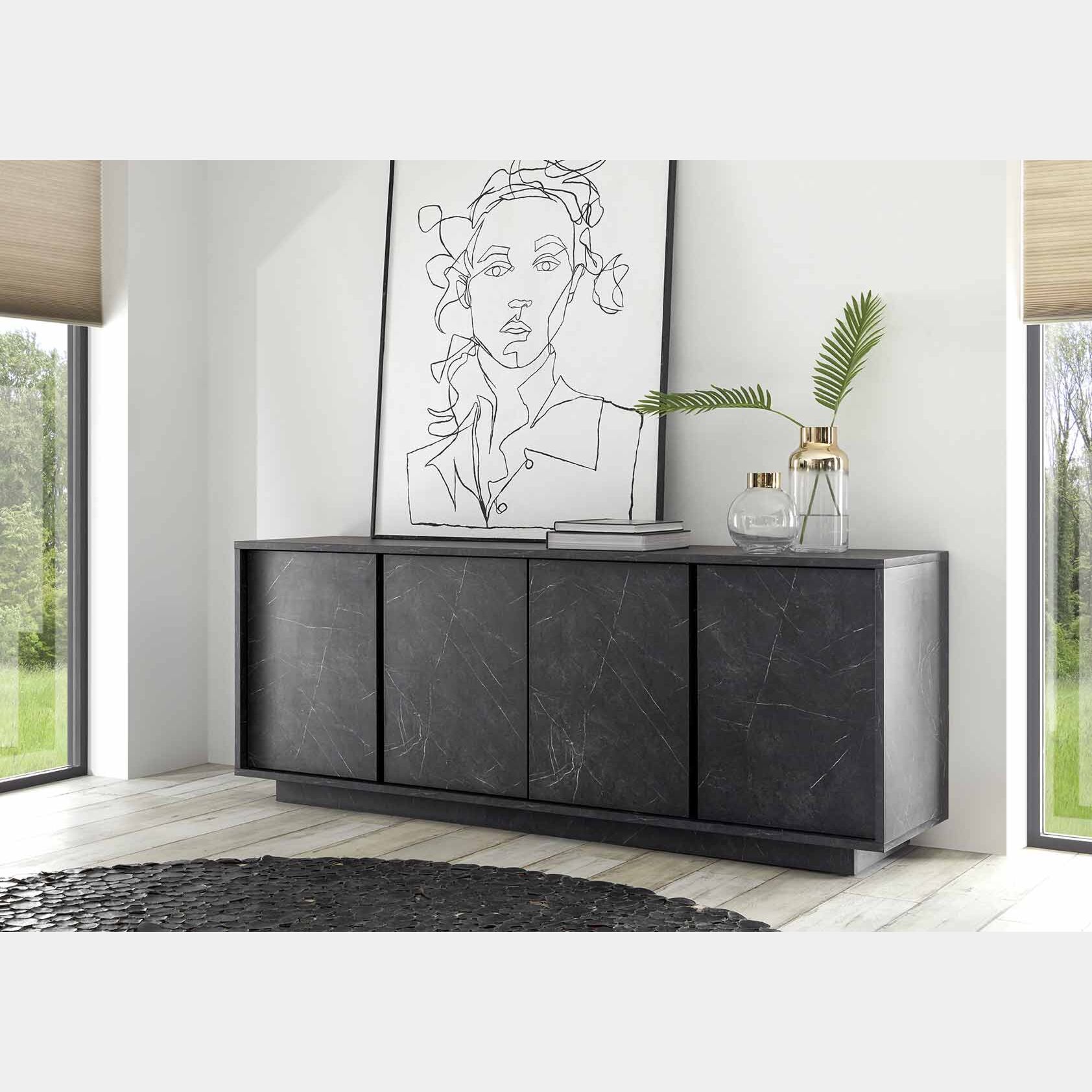 Con la sua finitura in effetto marmo nero di carrara l'arredo giorno riesce ad unire l'eleganza dello stile classico a delle linee vicine allo stile moderno.