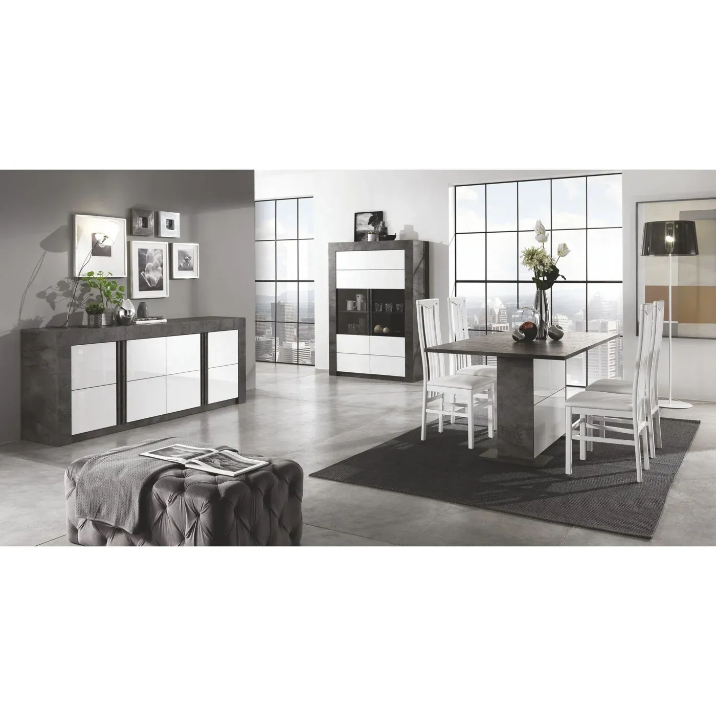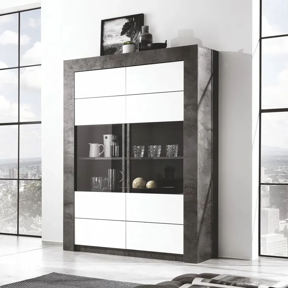 Soggiorno color Ossido e Bianco lucido serigrafato in promozione! E' composto da una madia, da una vetrina a due ante e da un tavolo.