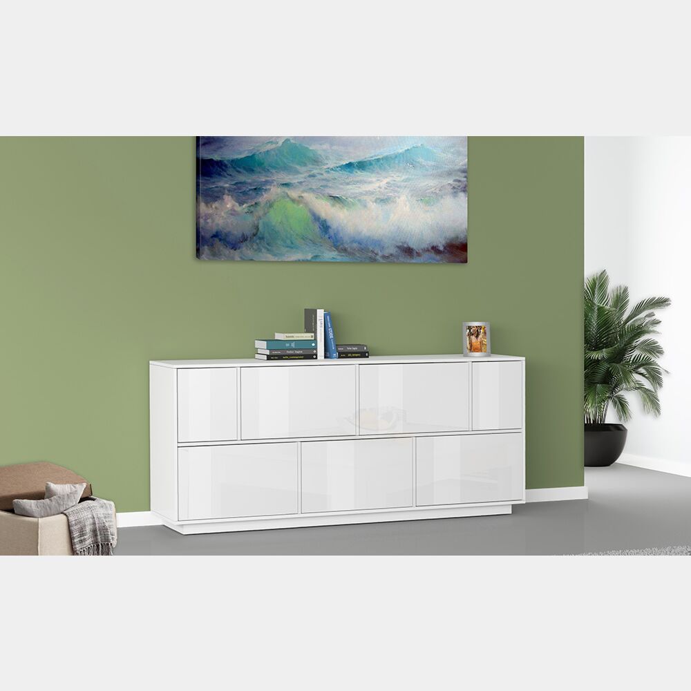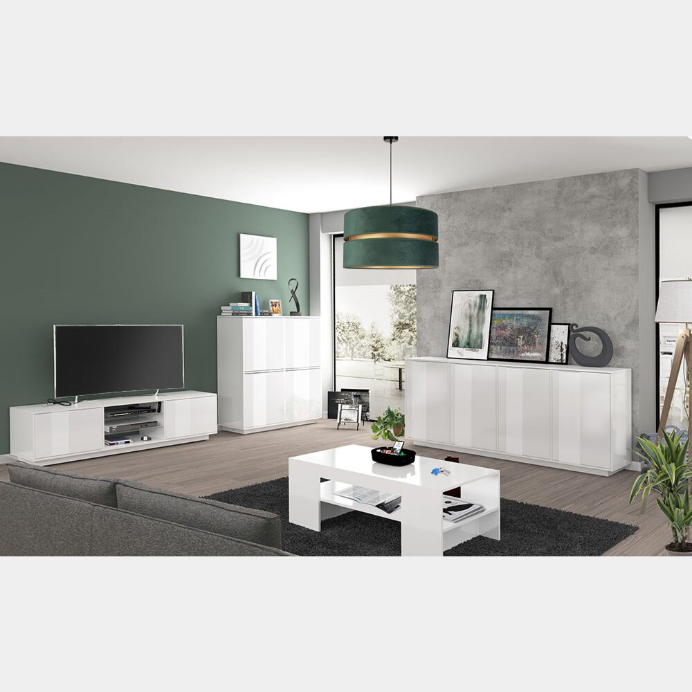 Salotto con madia alta, porta TV e madia 4 ante finitura bianco lucido