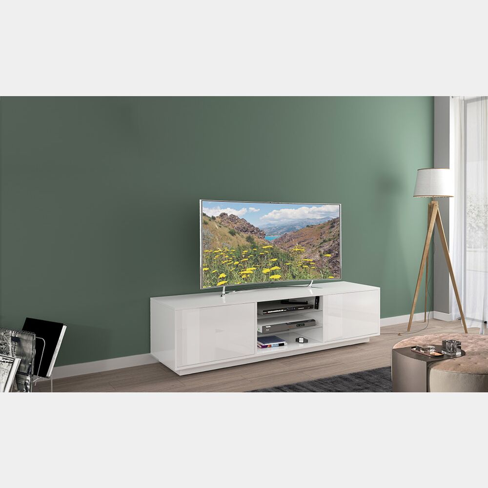 -Il porta tv moderno in finitura bianco laccato lucido si presta ad essere un complemento d'arredo indicato per contesti contemporanei e dal carattere giovanile. Le linee semplici e genuine che caratterizzano il porta televisore lo rendono però altrettanto versatile e contestualmente minimal, l'ideale per chi ama la semplicità all'interno della propria casa.