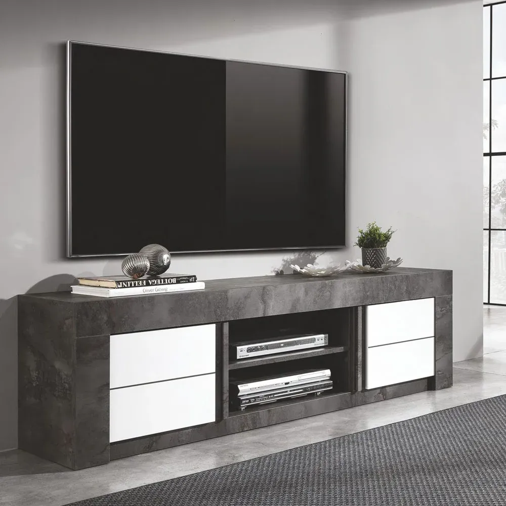 -Un porta Tv composto da un vano a giorno e da due ante. Il mobile è capiente per inserire cavi, apparecchiature elettroniche o libri, riviste. I mobili sono 100% Made in Italy prodotti da materiali resistenti e duraturi a lungo termine.