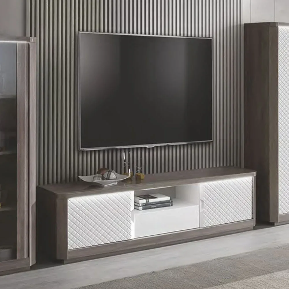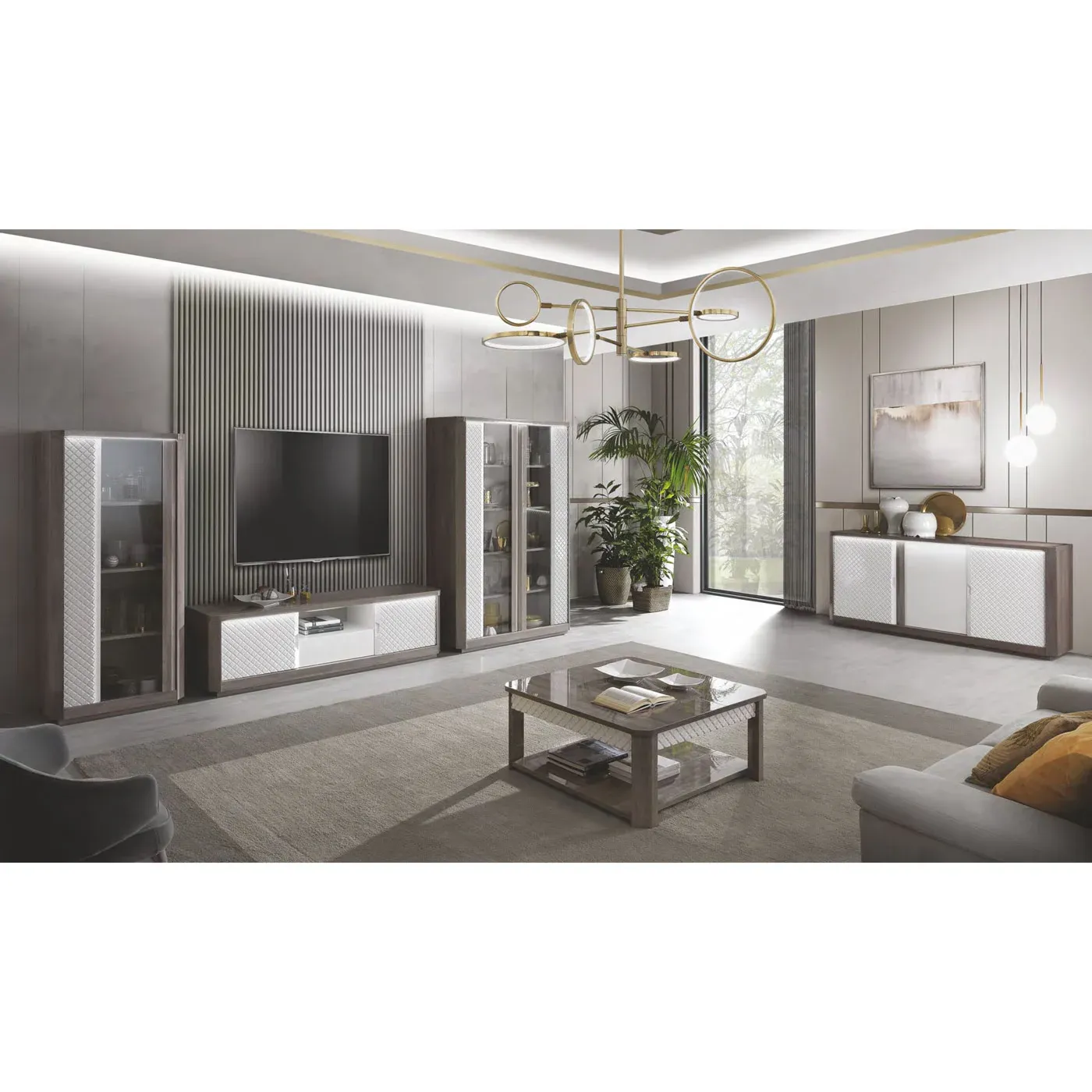 Nuovo soggiorno della collezione Zafferano in finitura Rovere Adamello lucido e Bianco lucido. I mobili sono tutti 100% Made in Italy e garantiscono una grande qualità, resistenza e durabilità. E' costituito da: