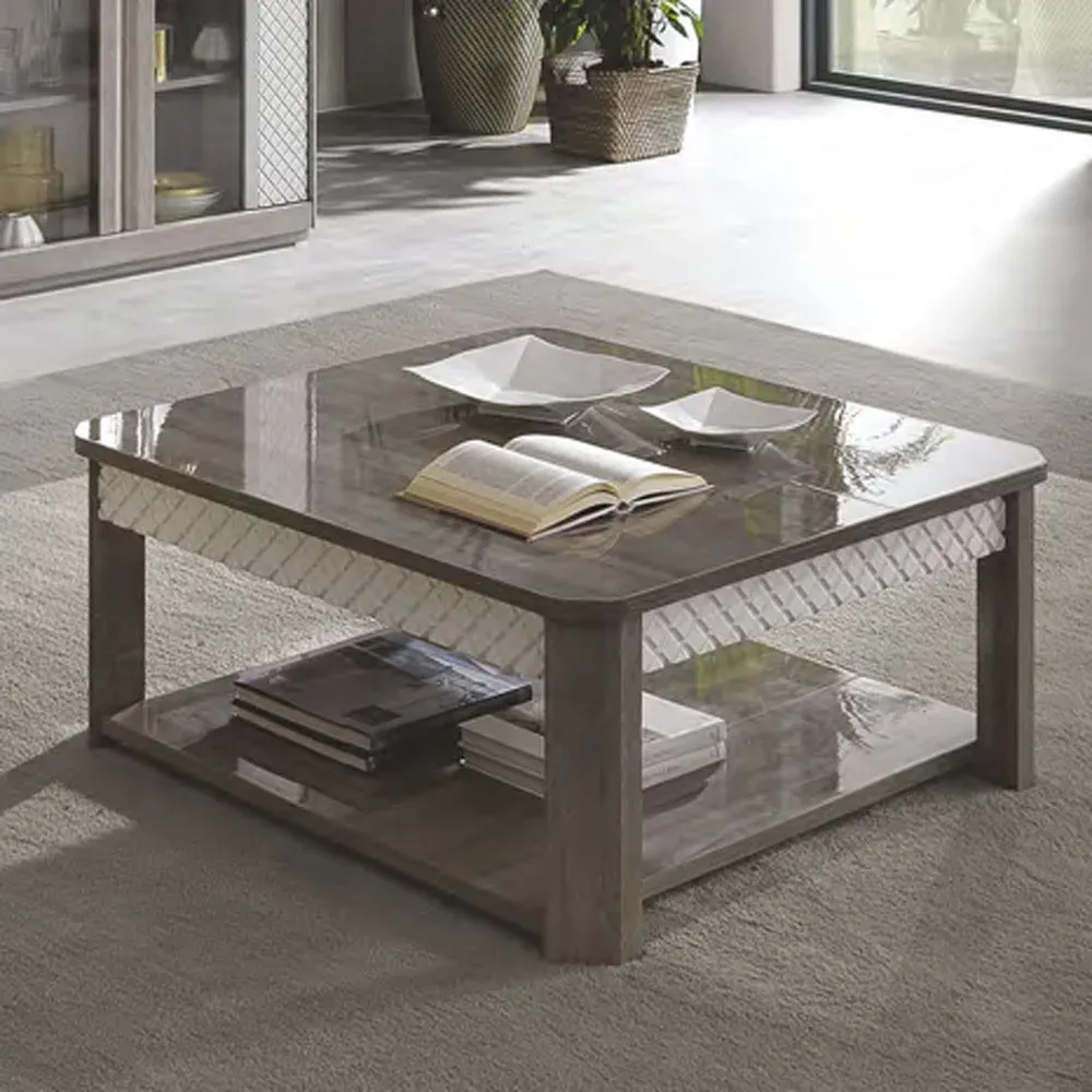 -Un tavolino da salotto a base quadrata in cui si può appoggiare un telecomando, delle riviste, dei DVD, delle carte da gioco, un soppramobile.