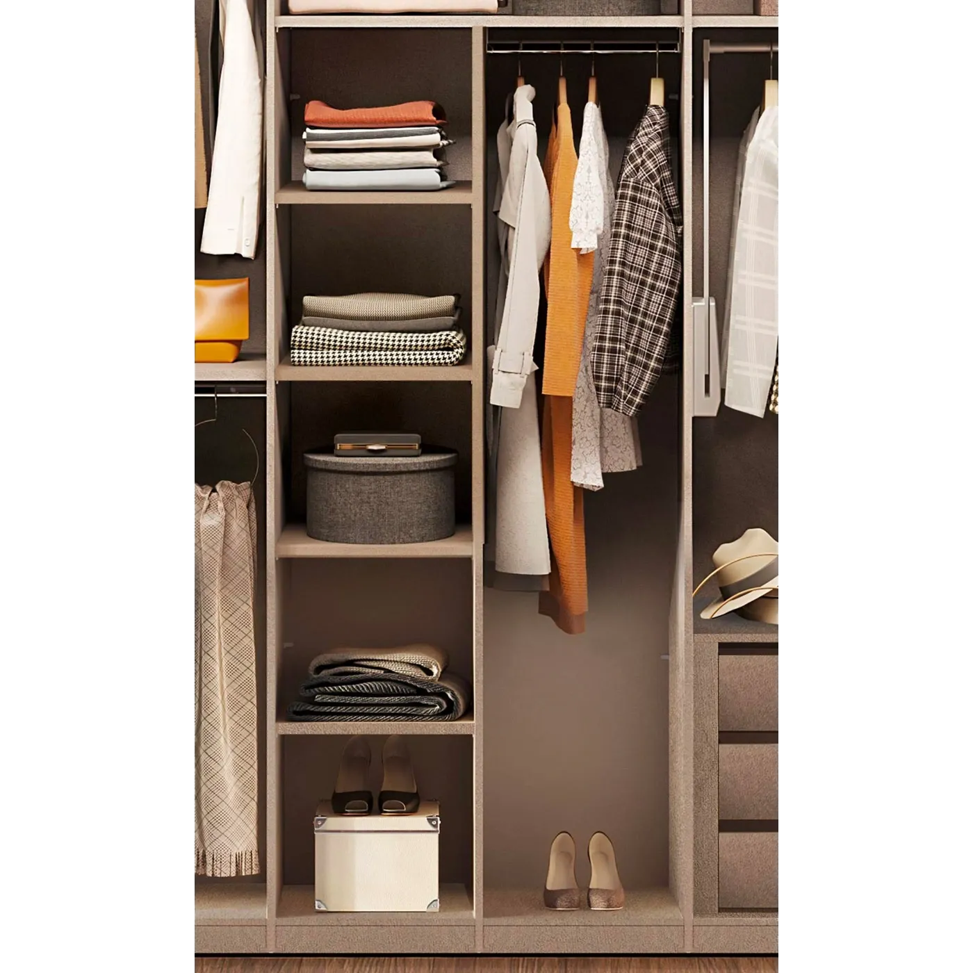 Scaffalatura interna per armadi che consta di 4 ripiani e 1 tubo appendiabiti.