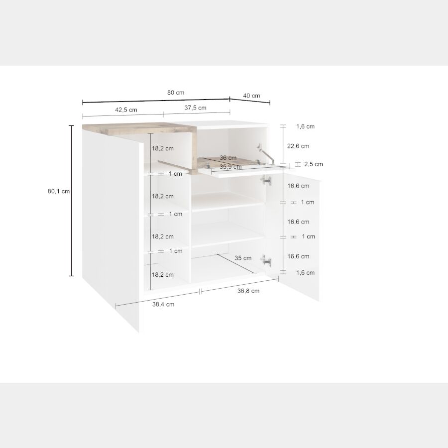 Scarpiera 2 ante, 1 anta ribalta bianco lucido e pero, made in Italy