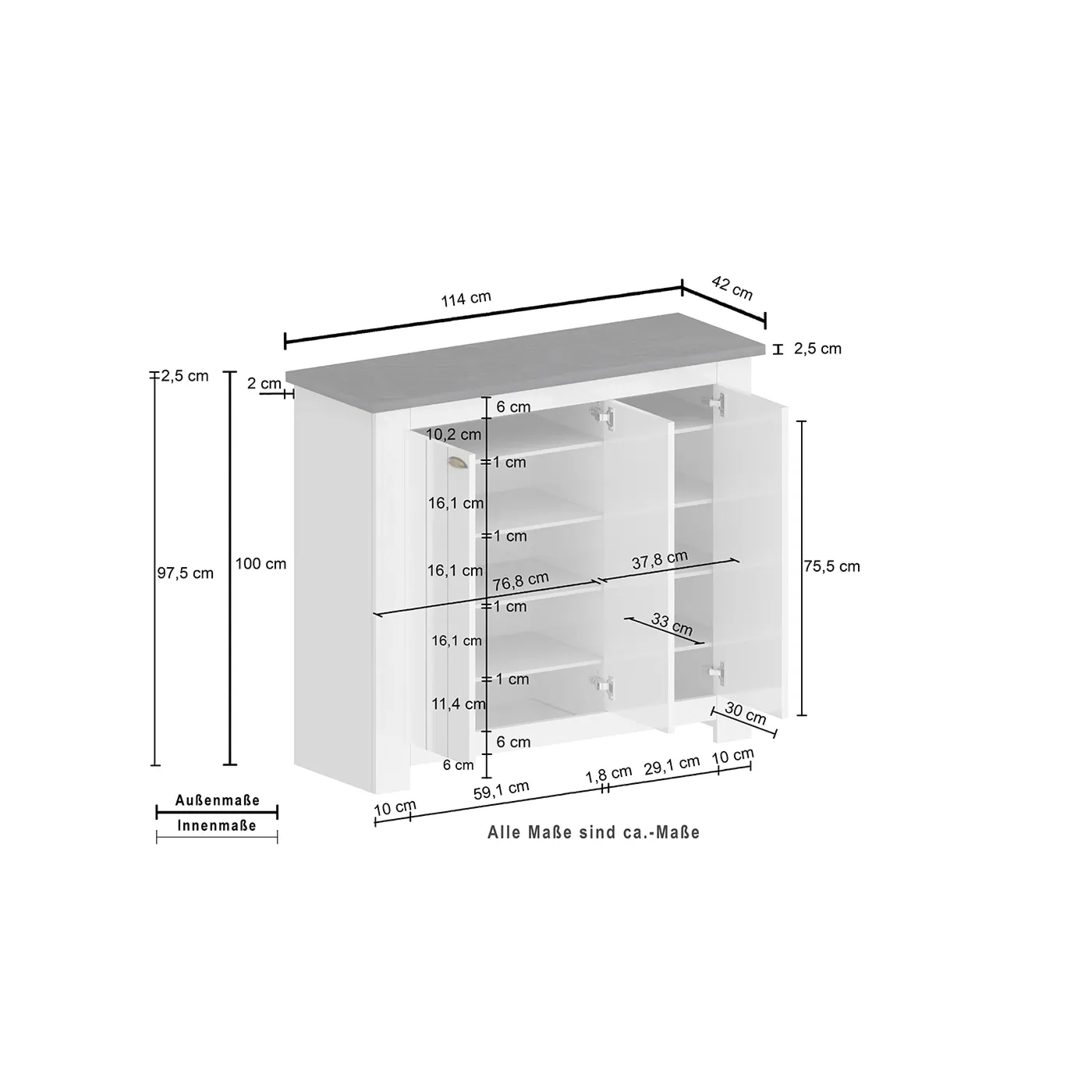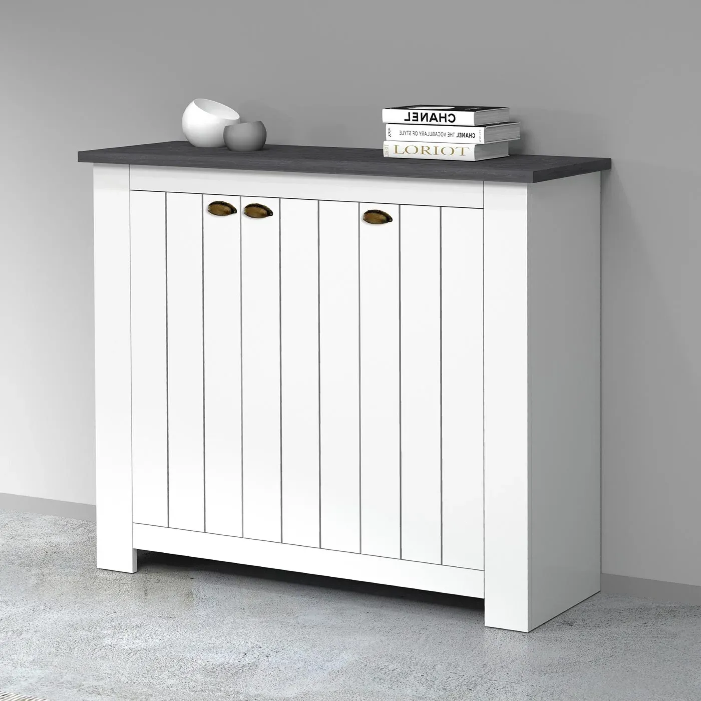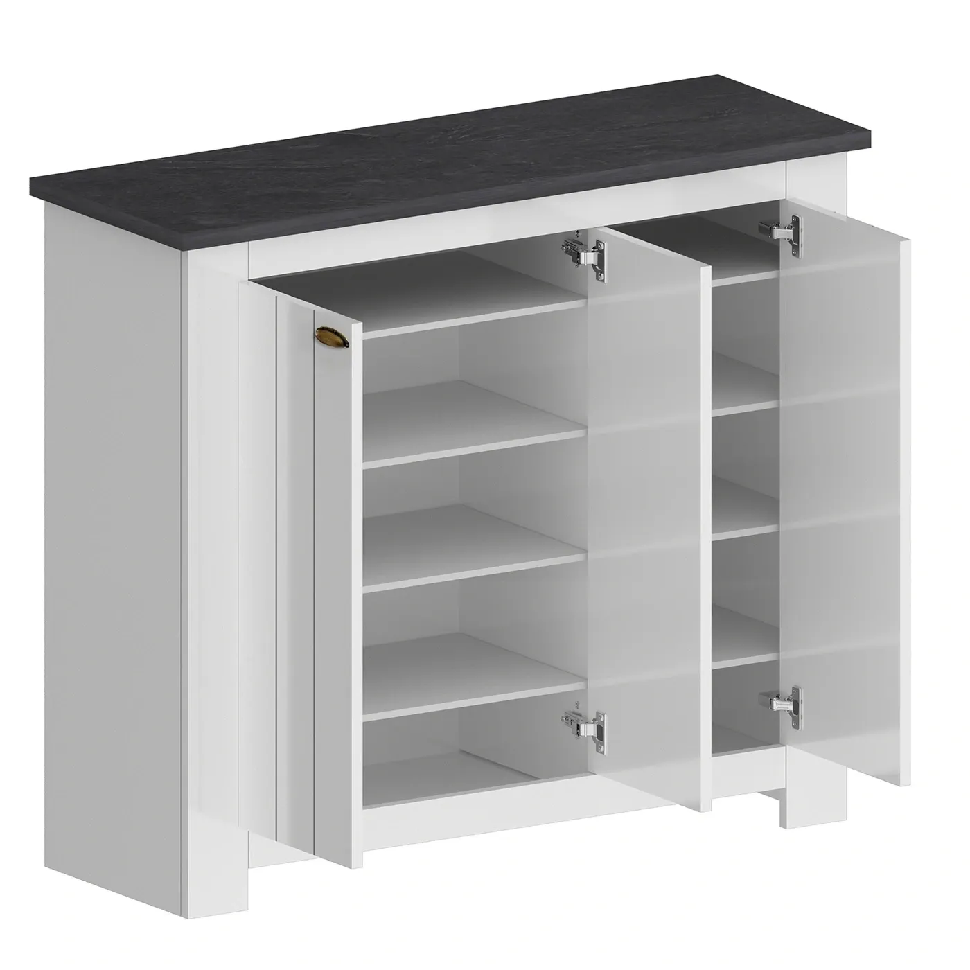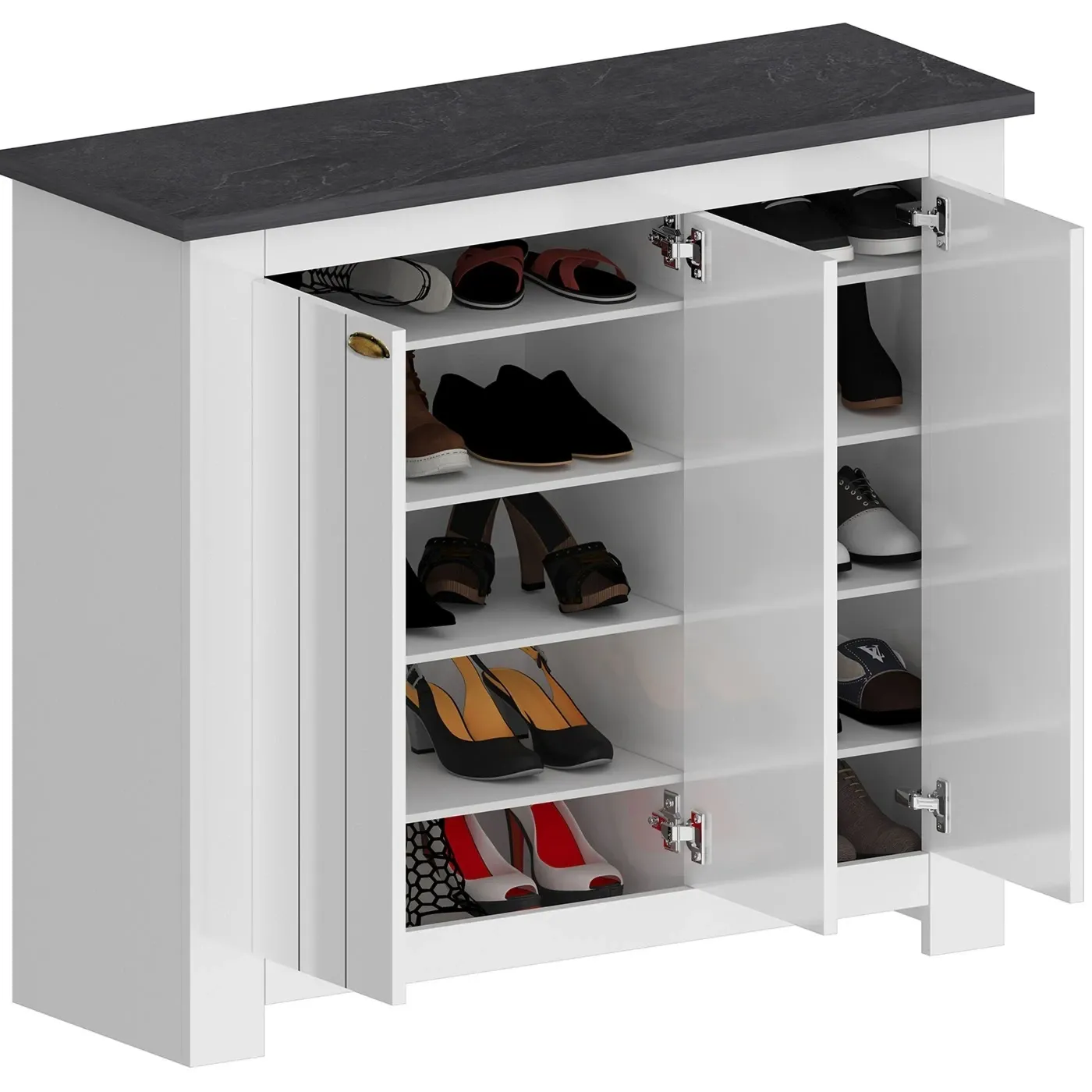 Scarpiera 3 ante, 114x100x42 h cm, Bianco opaco e Ardesia
