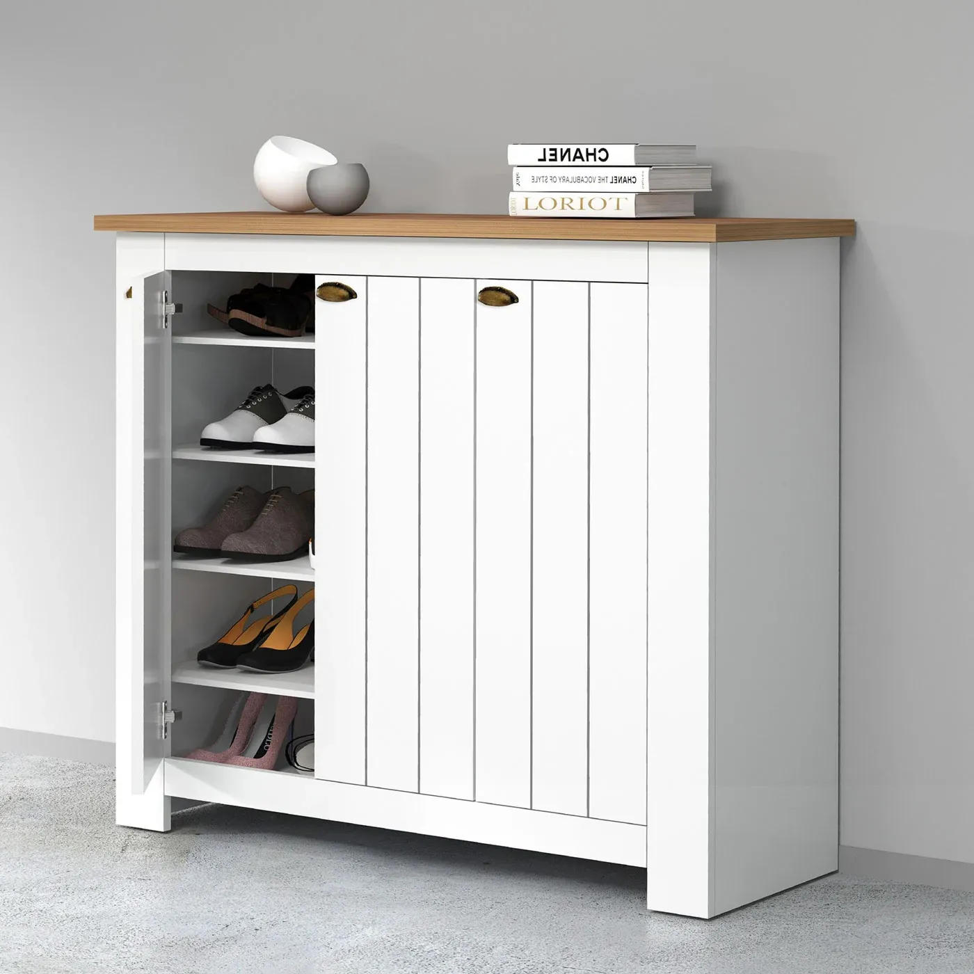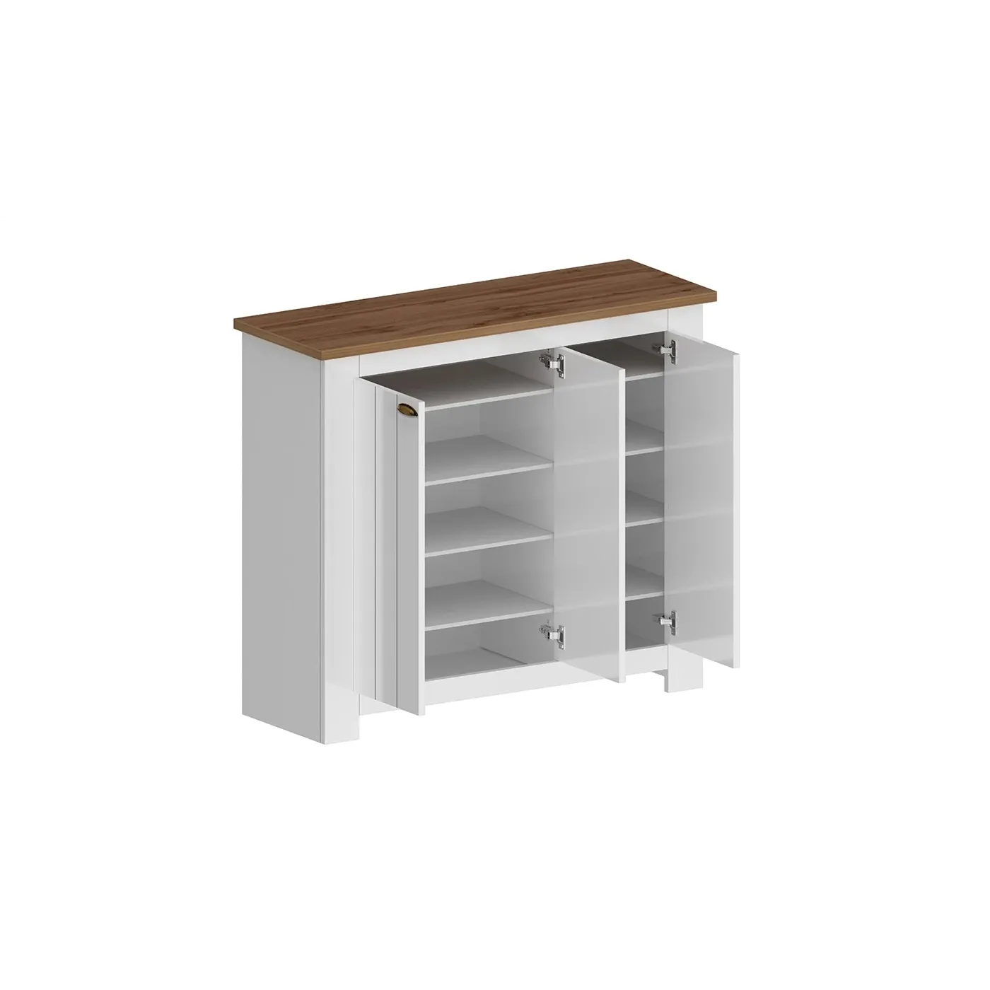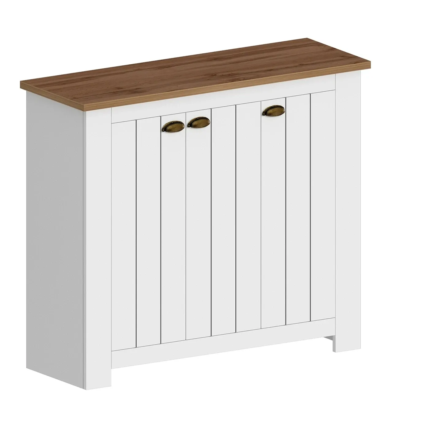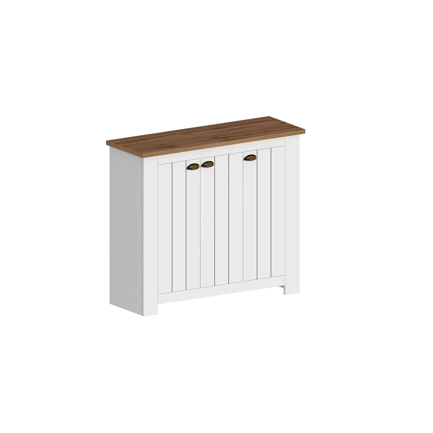 Scarpiera 3 ante, 114x100x42 h cm, Bianco opaco e Rovere wotan