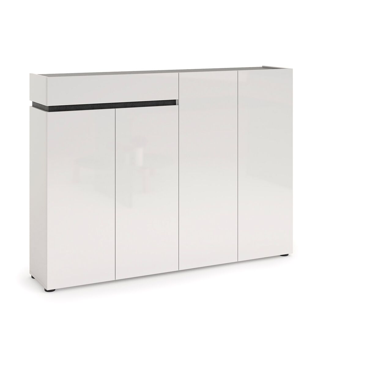 Promozione scarpiera 4 ante e 1 cassetto, Bianco laccato lucido