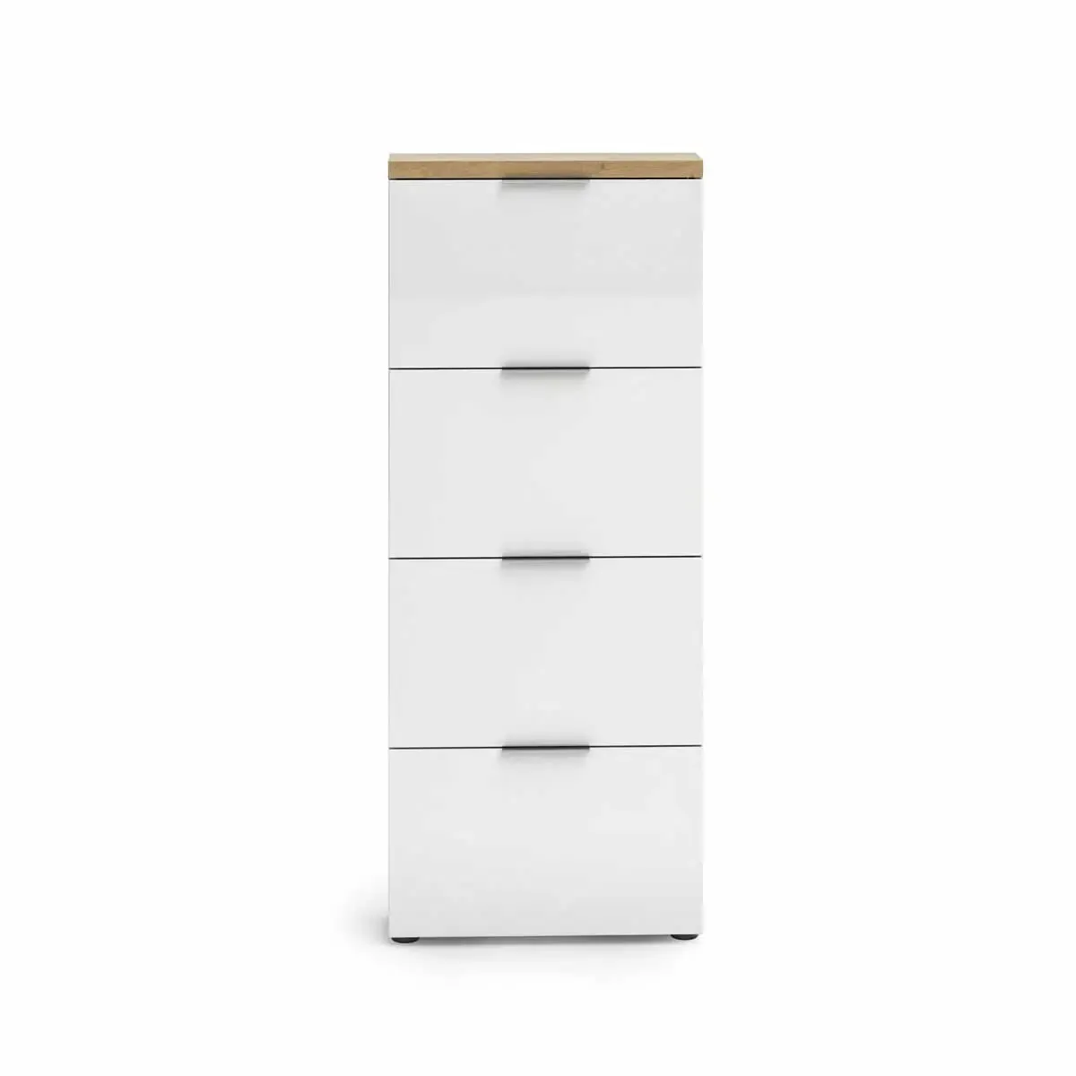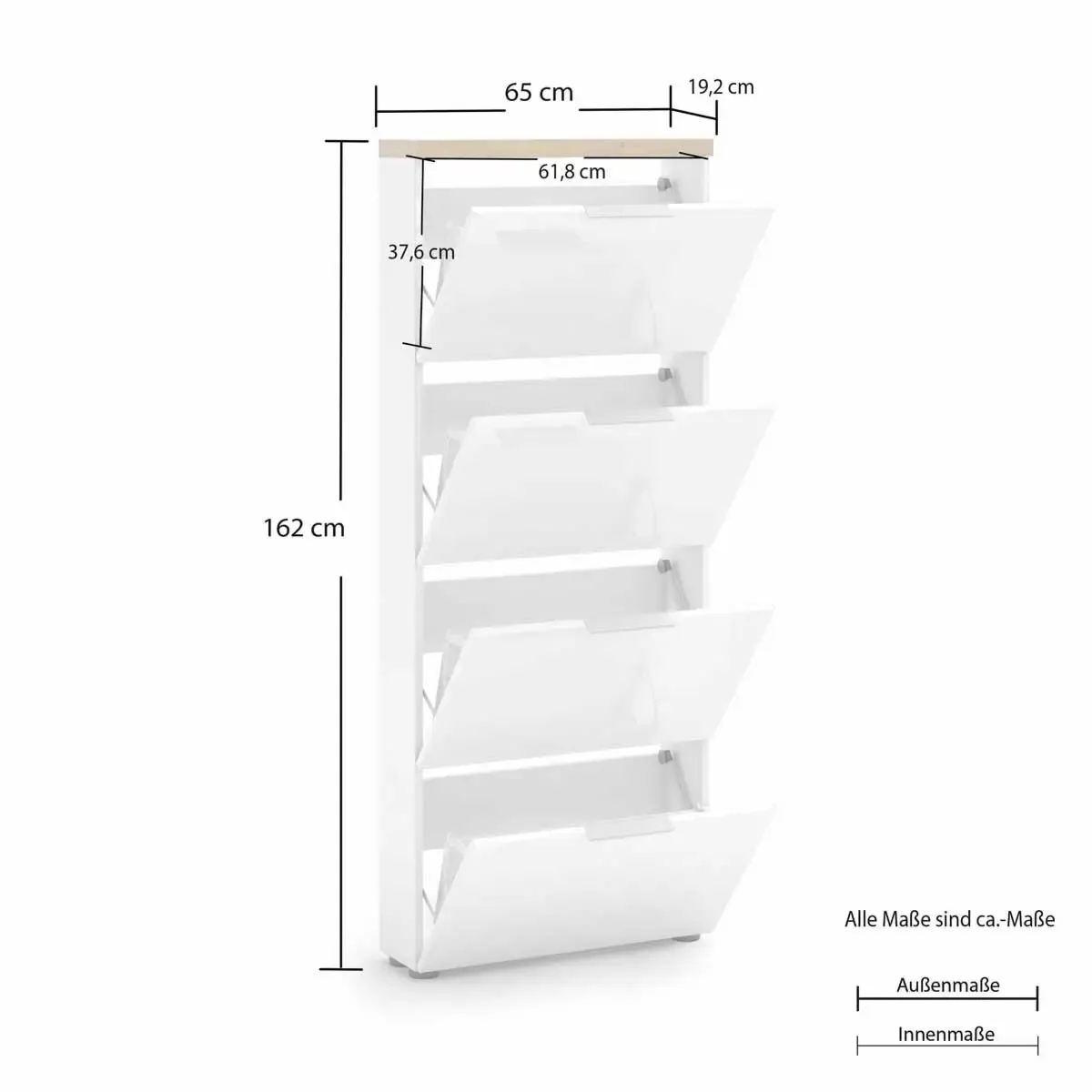 Scarpiera 4 ribalte, Bianco lucido e Rovere chiaro Made in Italy