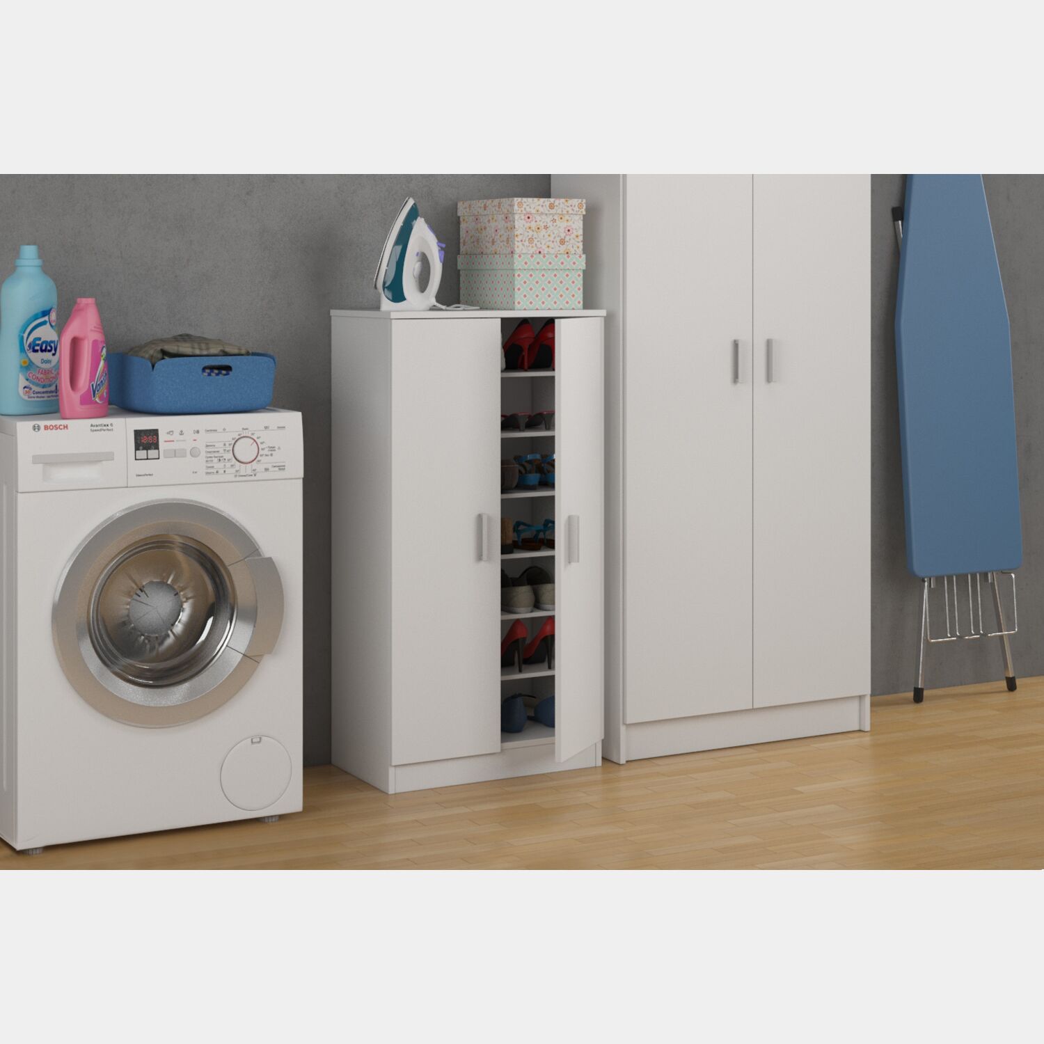 Scarpiera a 2 ante battenti con 6 ripiani interni, finitura bianca