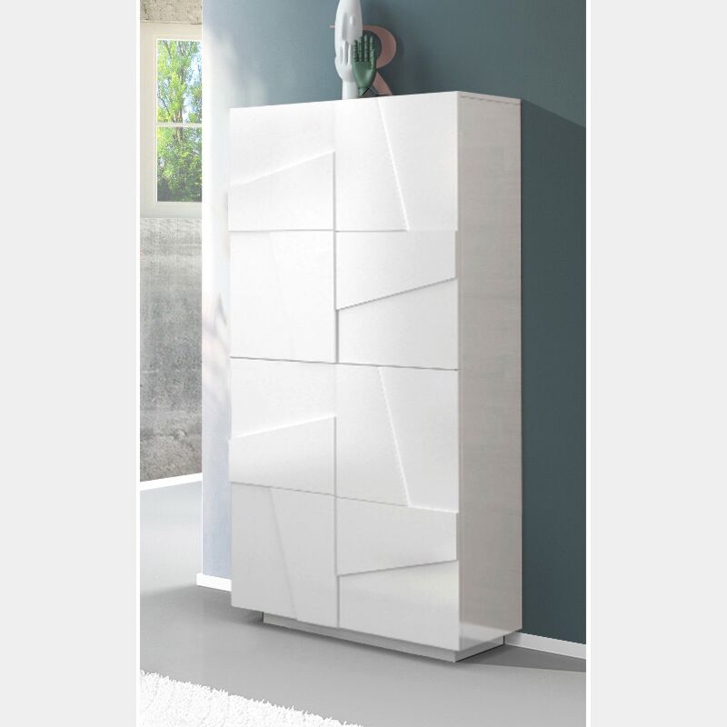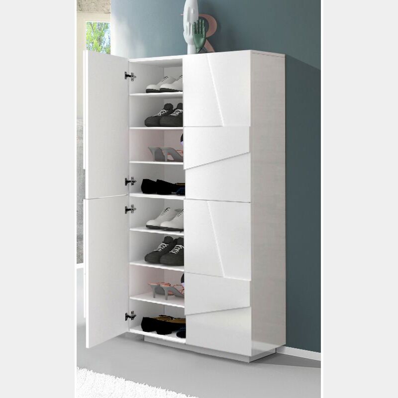 Scarpiera a 4 ante con disegni geometrici in finitura Bianco lucido