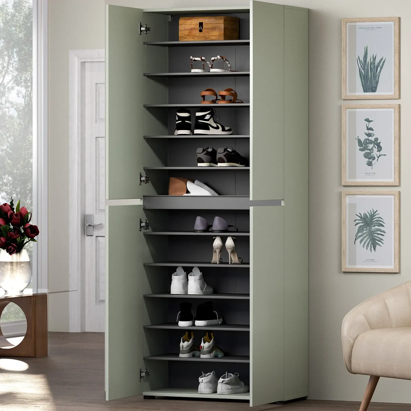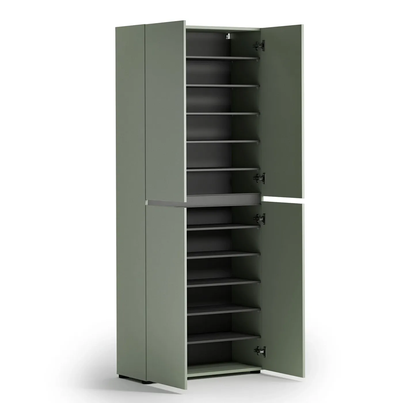 Scarpiera a 4 ante, 80x200x34 h cm, color Verde salvia