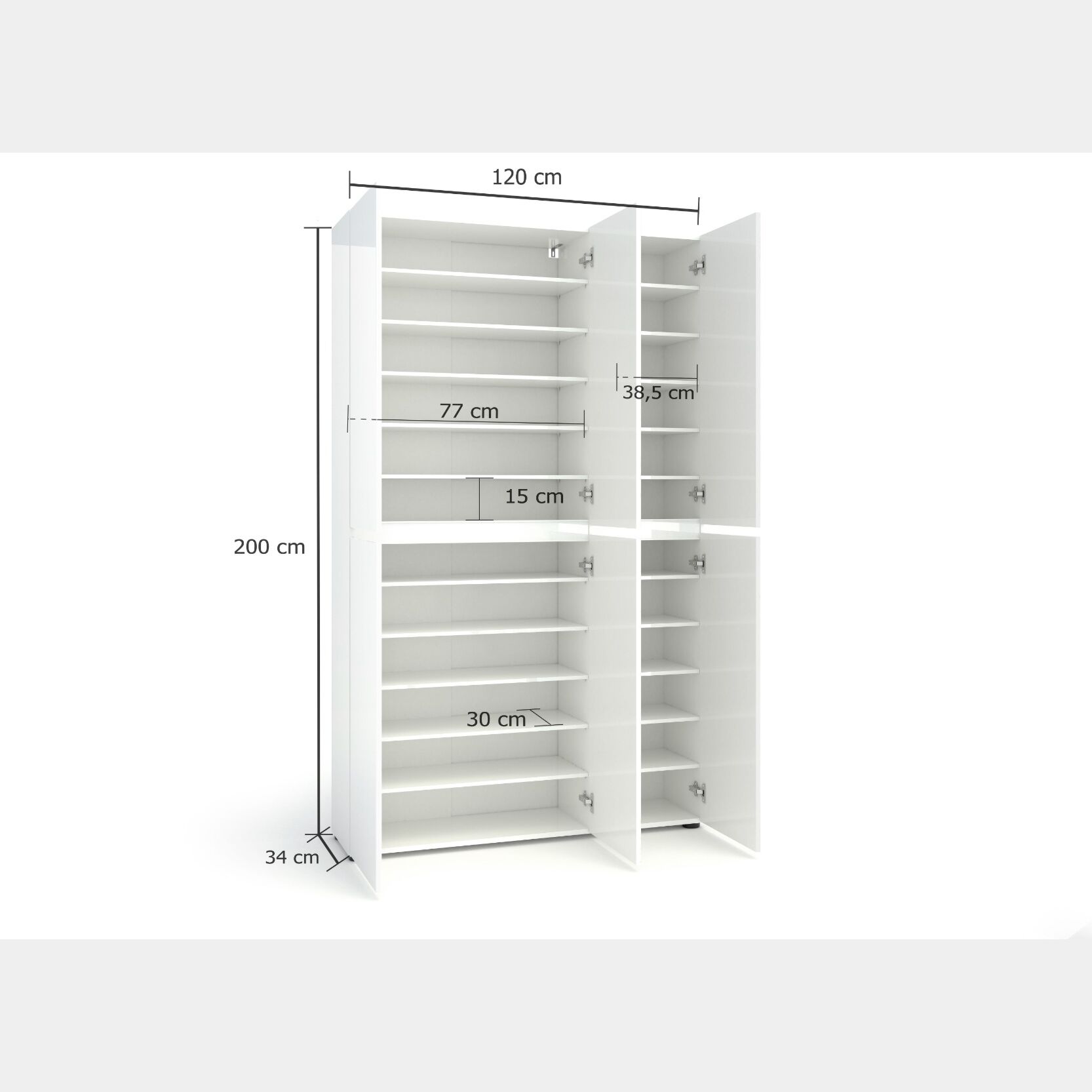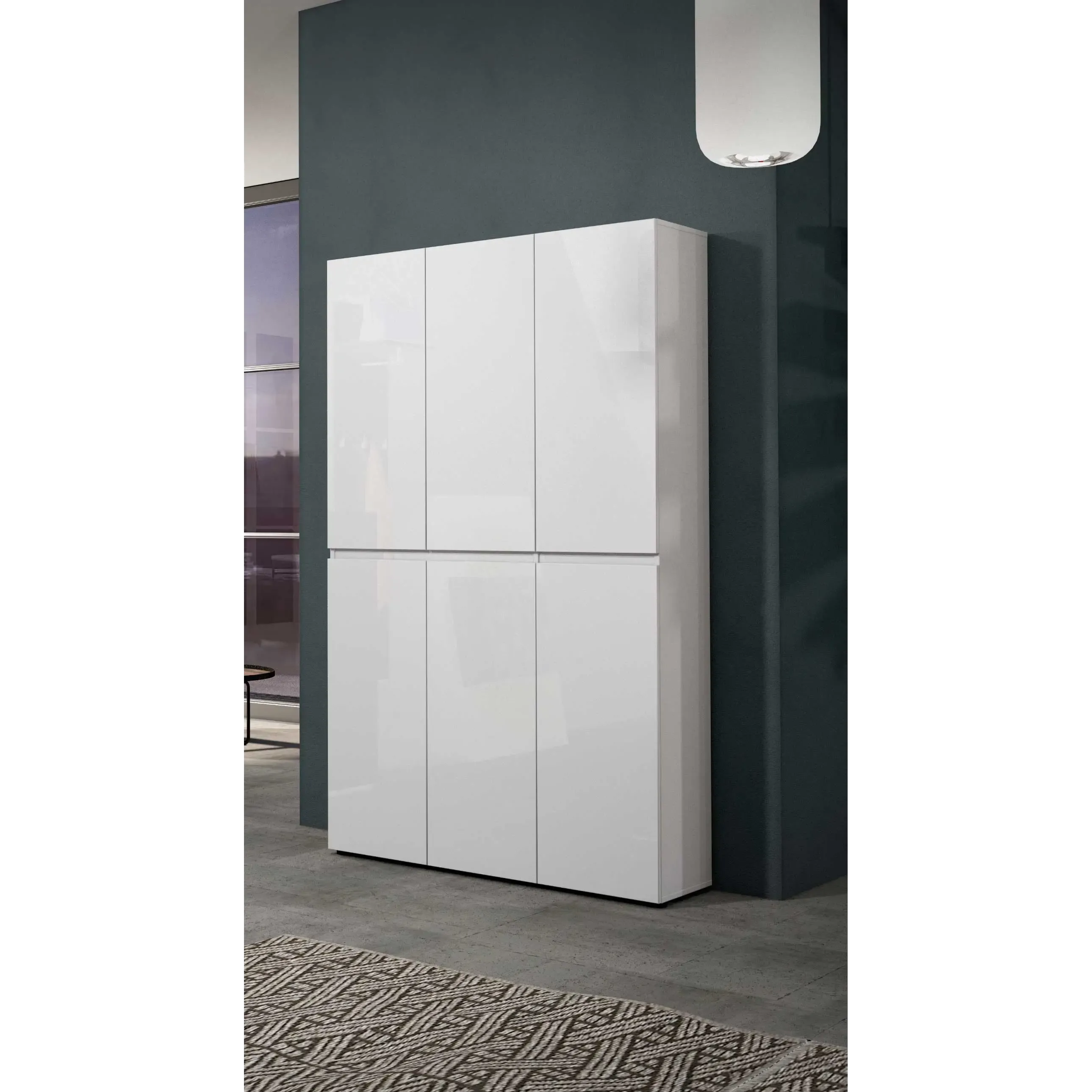 Scarpiera alta a 6 ante moderna Bianco lucido, Made in Italy