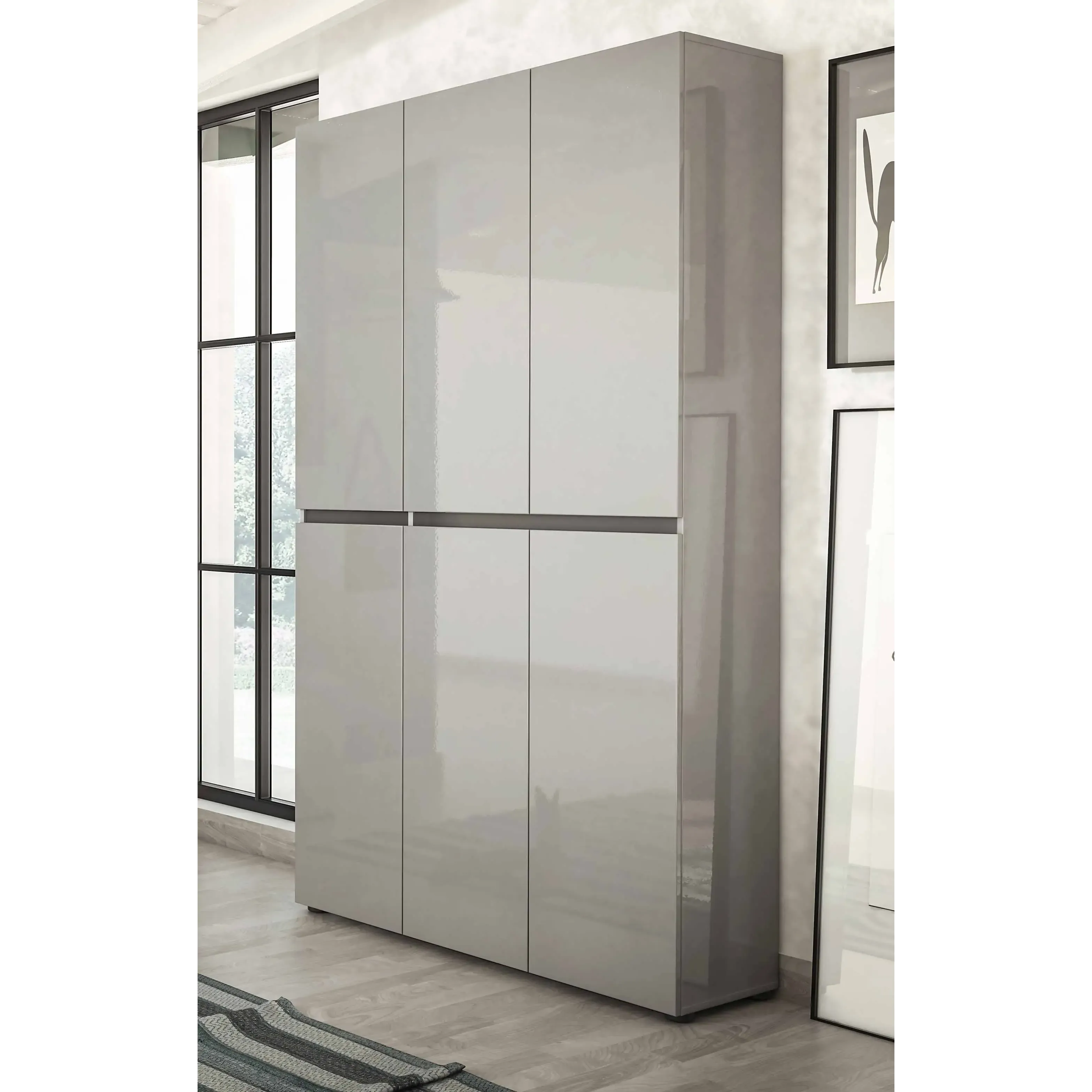 Scarpiera alta a 6 ante moderna Grigio lucida, Made in Italy