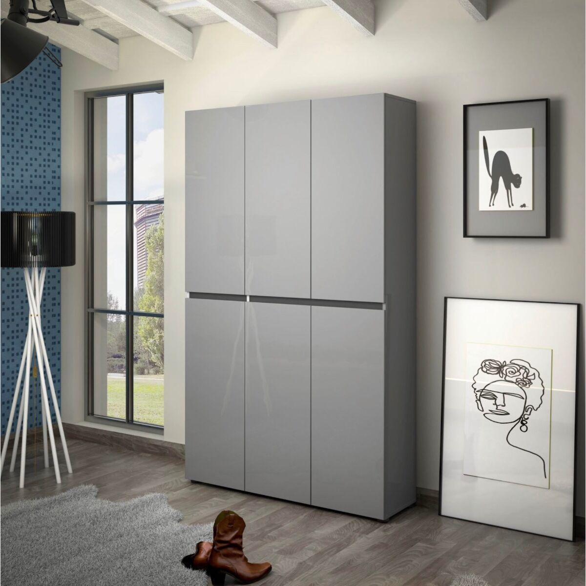 La soluzione moderna proposta da Zenzero Shop per arredare un ingresso è la scarpiera alta moderna finitura grigia lucida. Il mobile d'arredo multiuso è dotato di 6 ante e 24 capienti ripiani perfetto per riporre tutte le vostre scarpe e tenere sempre l'ingresso in ordine.