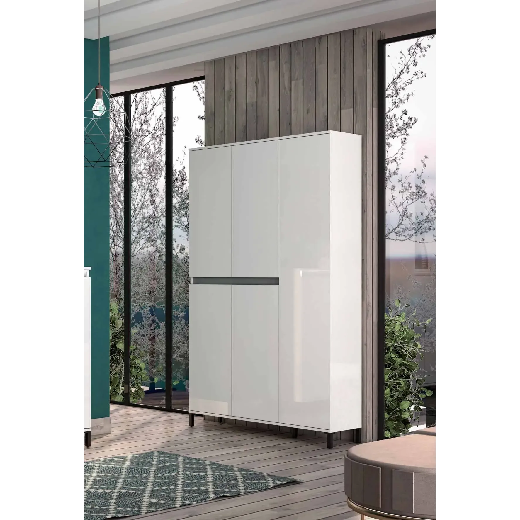 Armadio multiuso con 5 ante e dei pratici piedini, fa parte della Collezione Vena, il colore del mobile è Bianco lucido con dettaglio Ardesia, 100% Made in Italy dimensioni contenute e un ampio spazio interno, che lo rendono la miglior scelta di arredo per te che necessiti di sfruttare al meglio e con intelligenza gli spazi di casa!