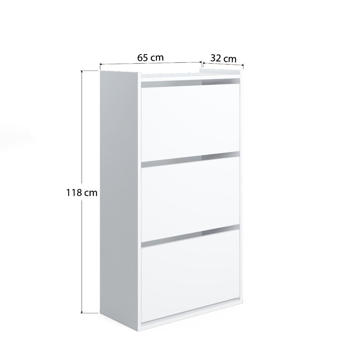 Le dimensioni della scarpiera sono in perfetto equilibrio tra capienza ed ingombro: i suoi 3 capienti cassetti a ribalta garantiscono un ampio spazio di appoggio per le scarpe, al contempo la scarpiera non risulta eccessivamente larga o profonda da risultare ingombrante.