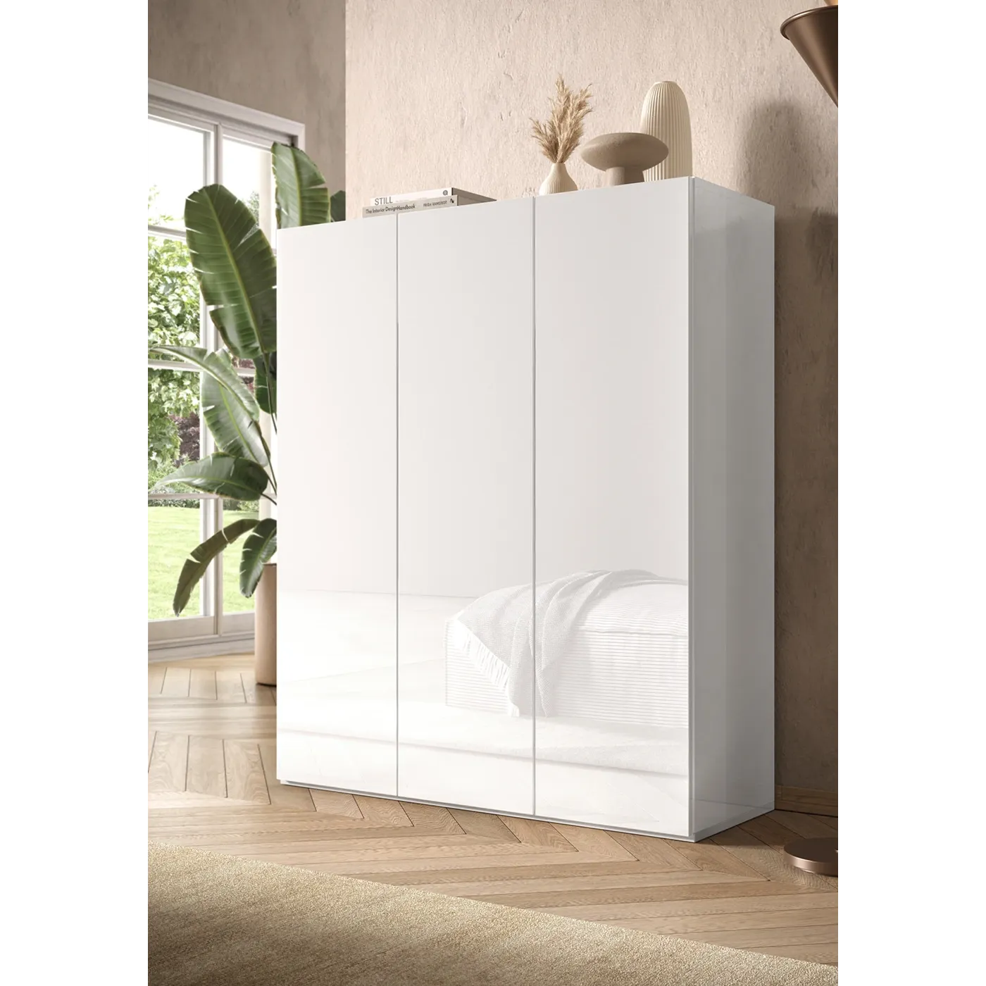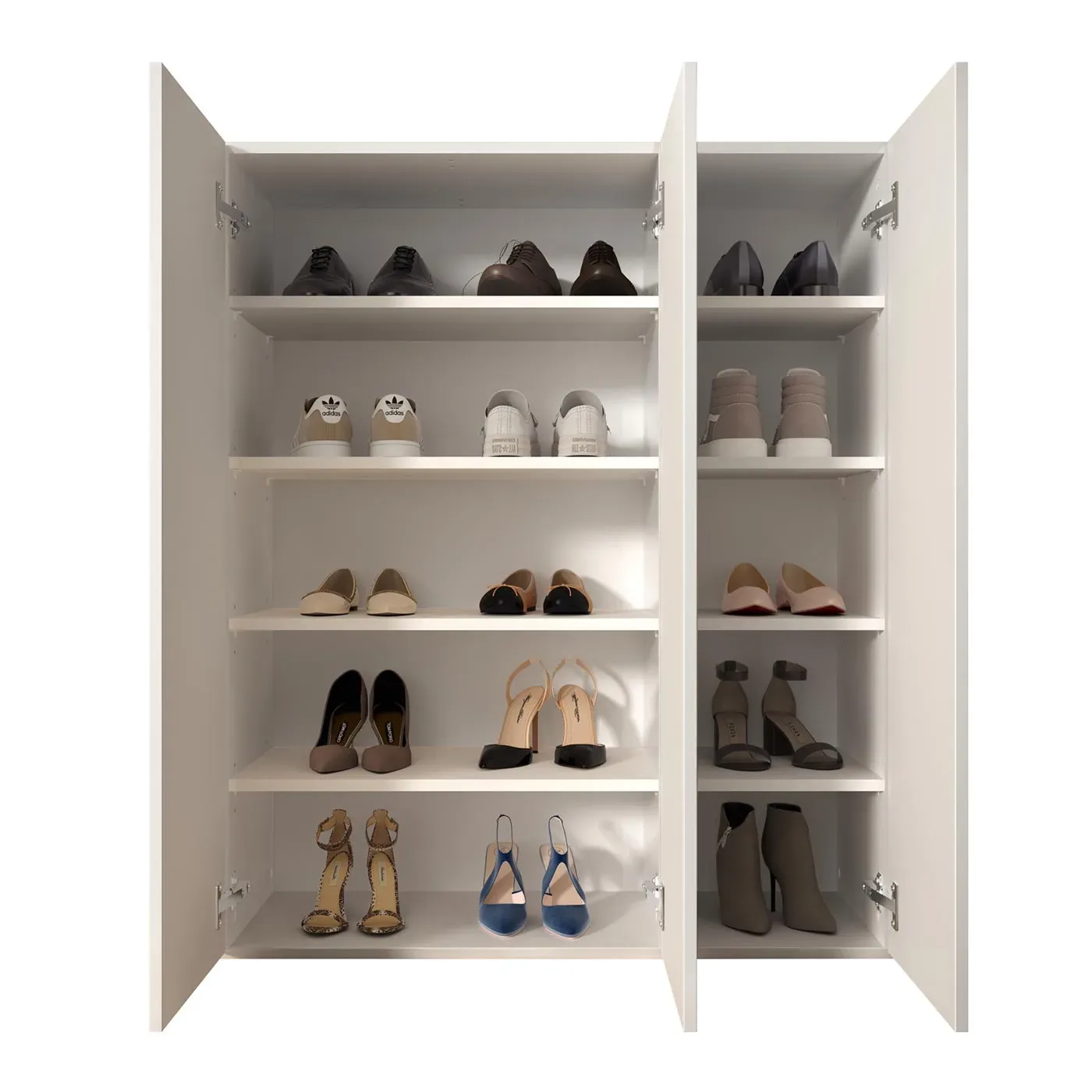 Scarpiera bassa 3 ante, 95x116x35 h cm, Bianco lucido