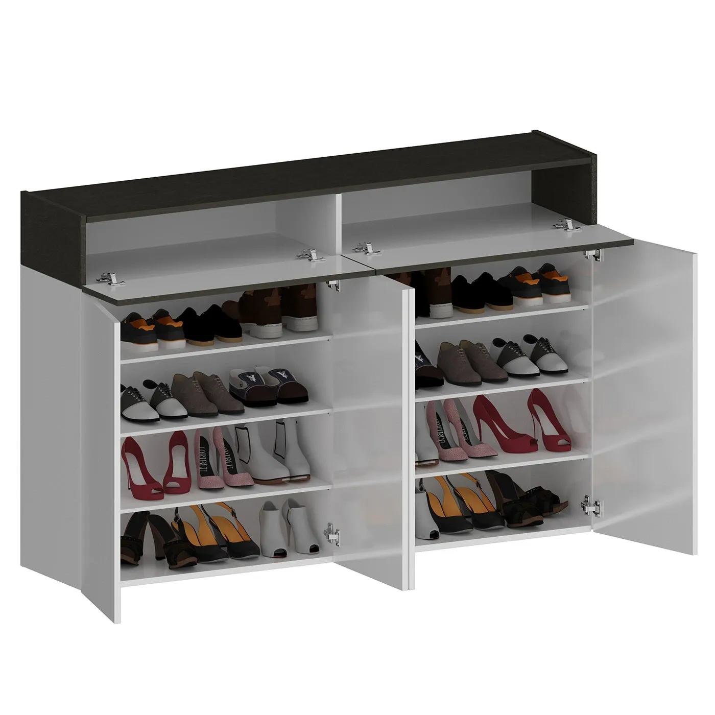 Scarpiera con 4 ante e 2 ribalte, Bianco laccato lucido e Ardesia
