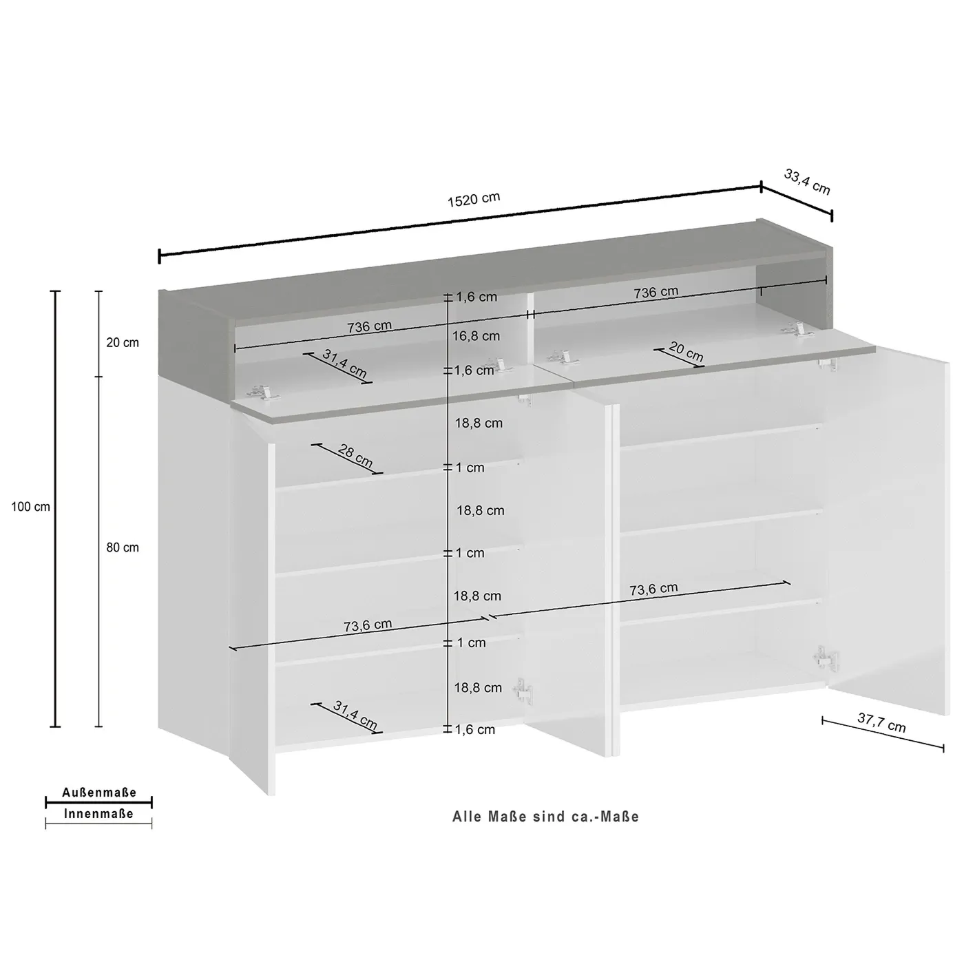 Grazie alla sua struttura sviluppata in orizzontale, sfrutta al massimo lo spazio disponibile, garantendo di disporre le scarpe con un ordine efficiente. Disponibile in diverse combinazioni di colore, come bianco lucido/bianco larice, bianco lucido/ardesia e bianco lucido/rovere wotan, si adatta facilmente a vari stili d'arredamento.