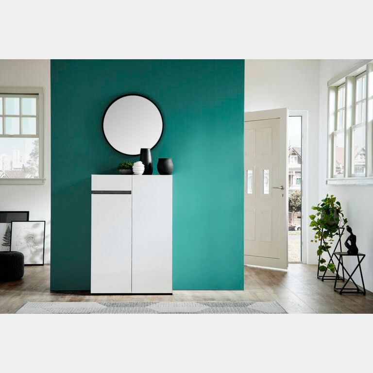 Scarpiera da ingresso, 2 ante 1 cassetto, Bianco lucido, pronta consegna