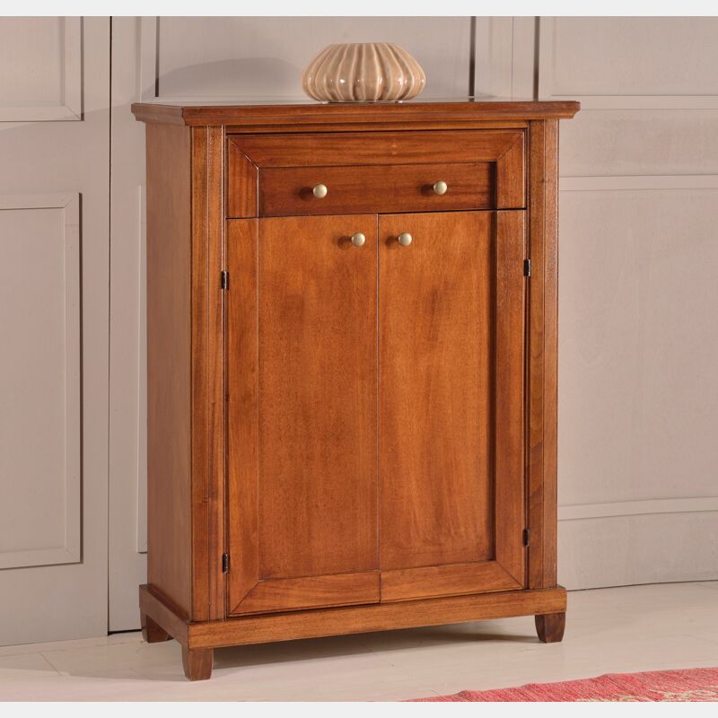 Mobile scarpiera con apertura ad anta e cassetto superiore per contenere accessori delle calzatre. Finitura Noce Arte Povera