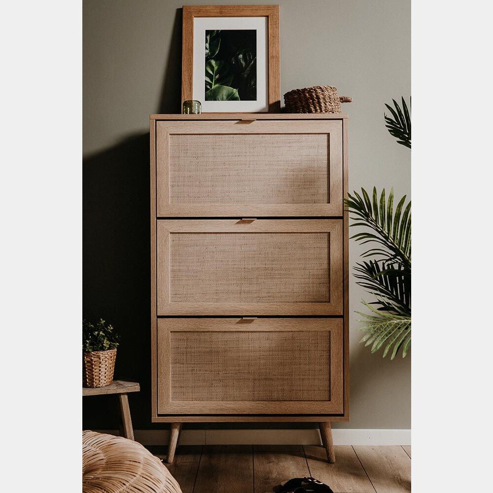 Scarpiera Kara con 3 cassetti in finitura Quercia e Rafia