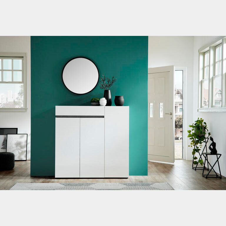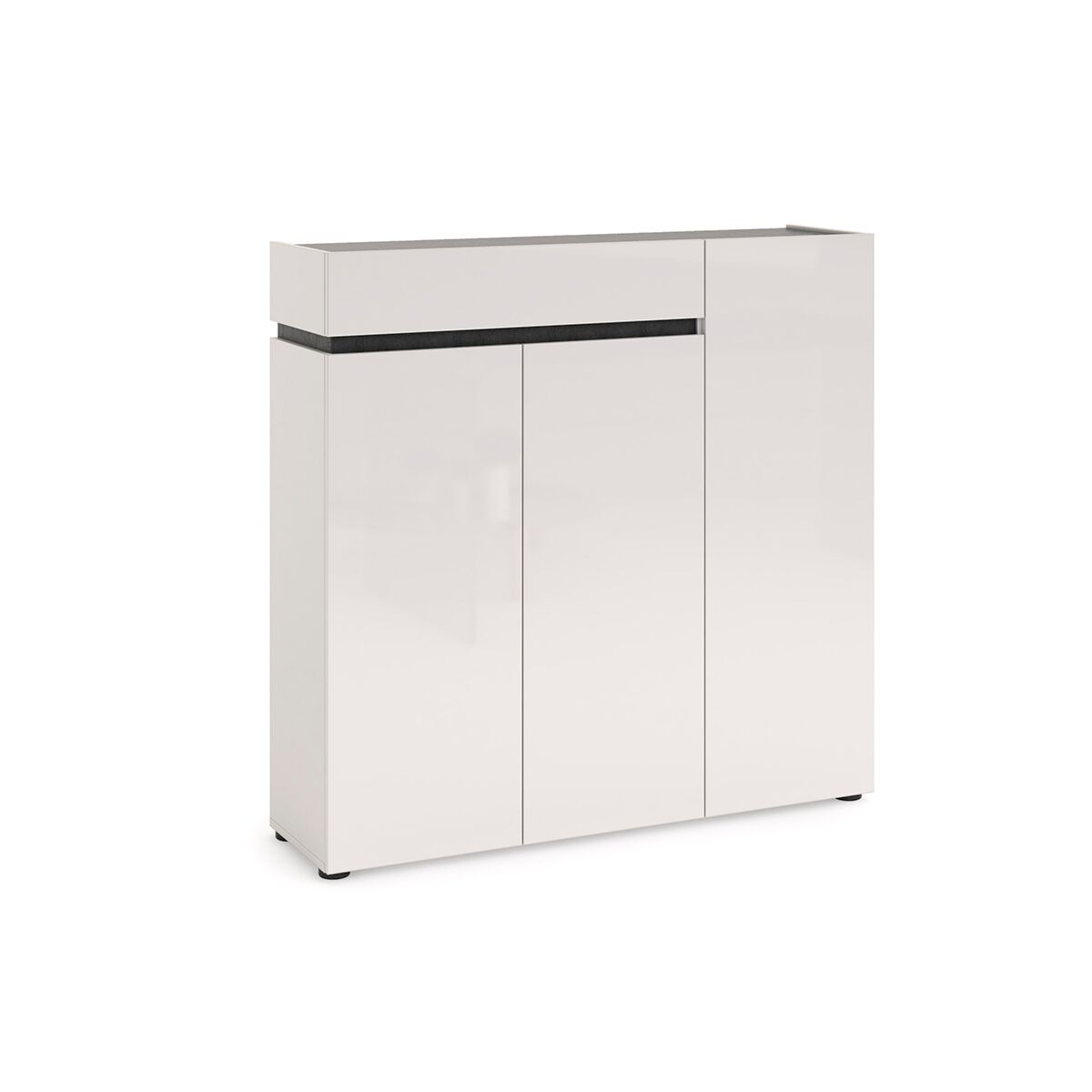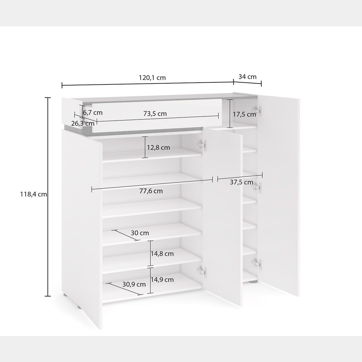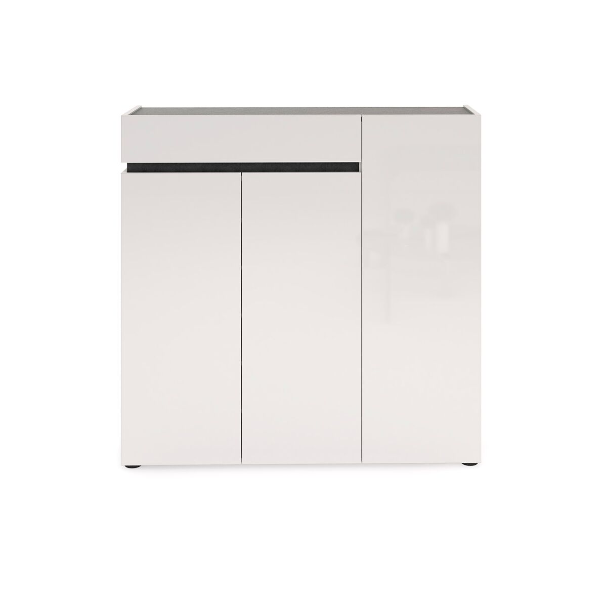 Scarpiera laccata bianco lucido con 3 ante e 1 cassetto