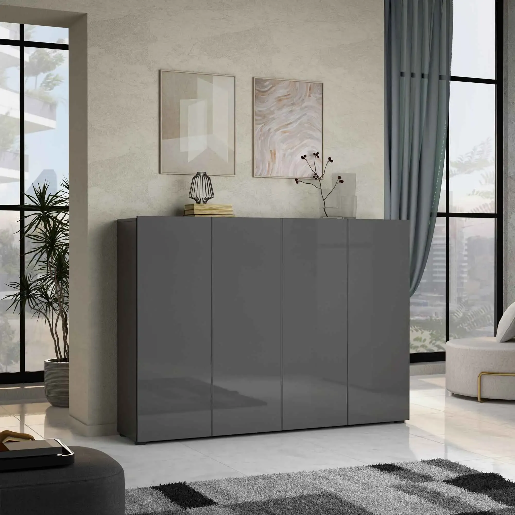 Scarpiera / Madia multiuso a 4 ante moderna finitura Antracite lucido dal design lineare ed elegante. Perfetta per arredare un ingresso.