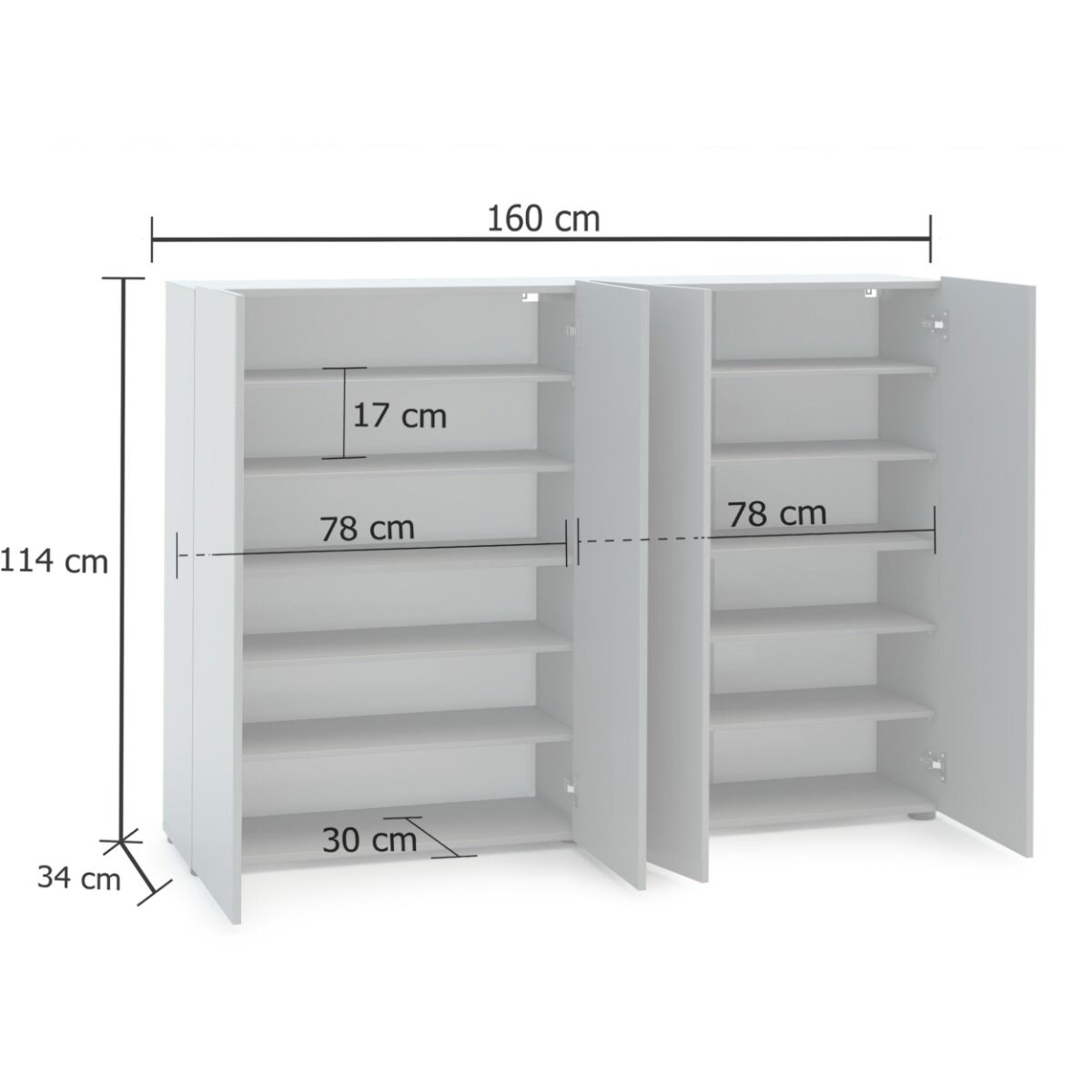 Per un ingresso dallo stile unico, contemporaneo e funzionale, vi proponiamo questa ampia scarpiera moderna da cm 160 e alta cm 114, strutturata con 4 ante e dotata di 10 ripiani interni.