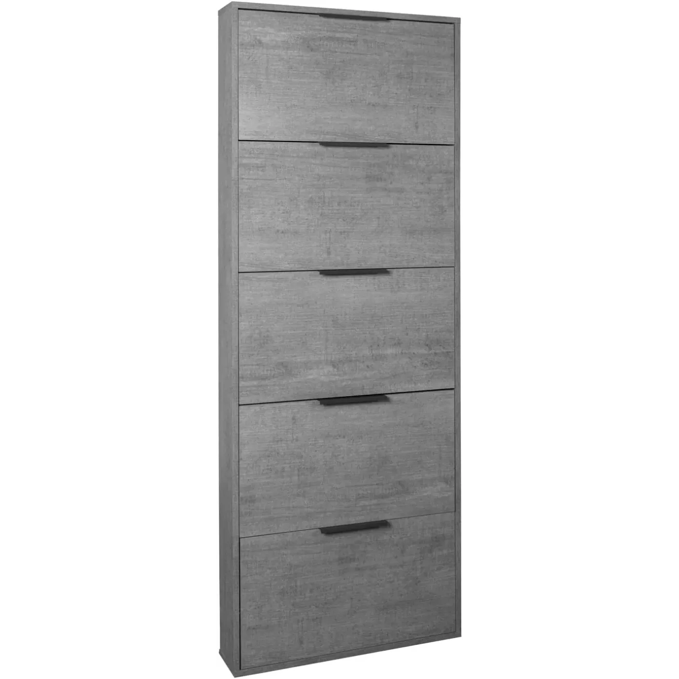 Scarpiera salvaspazio, 5 ante a ribalta, made in Italy, colore cemento.La scarpiera ha una profondità di 15 cm e lo spessore dei pannelli è di 16 mm.