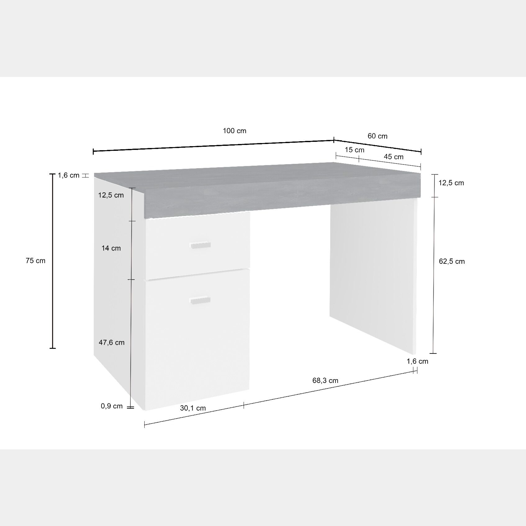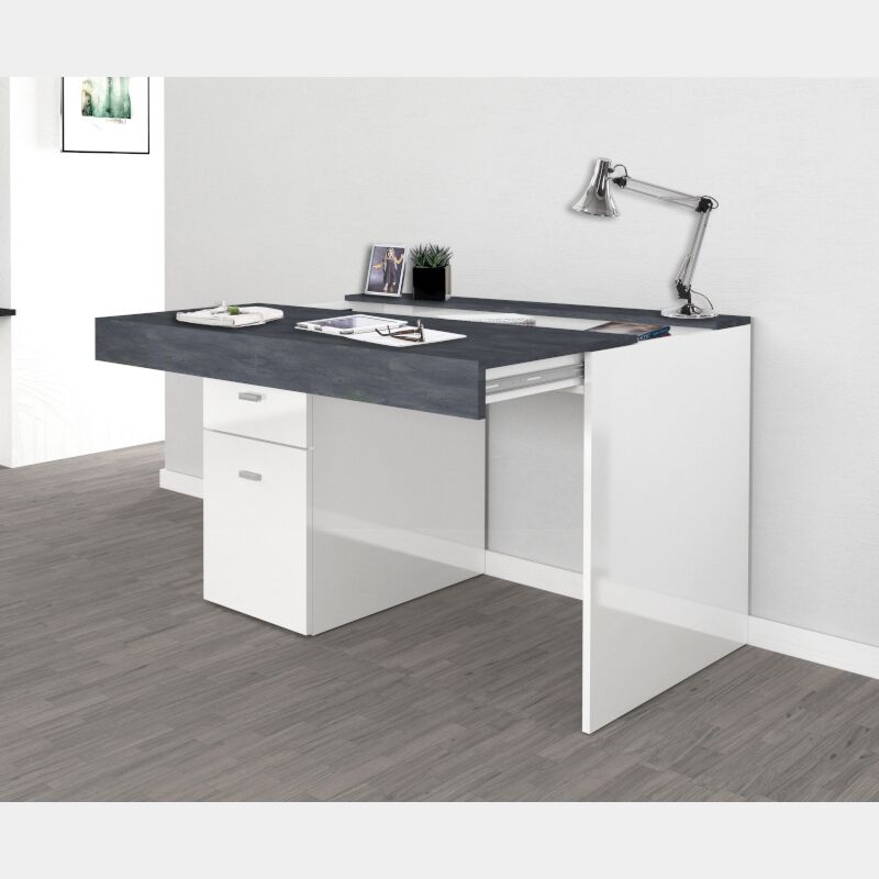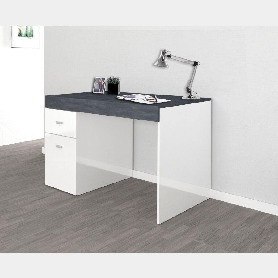 Pratica Scrivania da ufficio in finitura bianco lucido e ardesia con 1 anta e 1 cassetto.