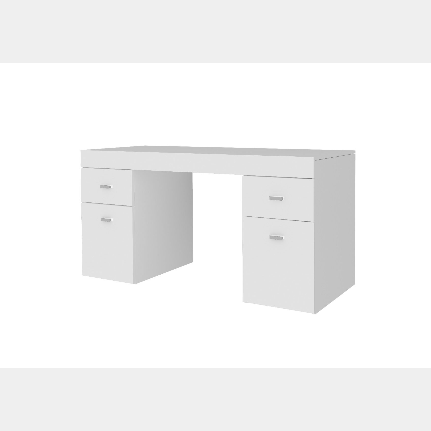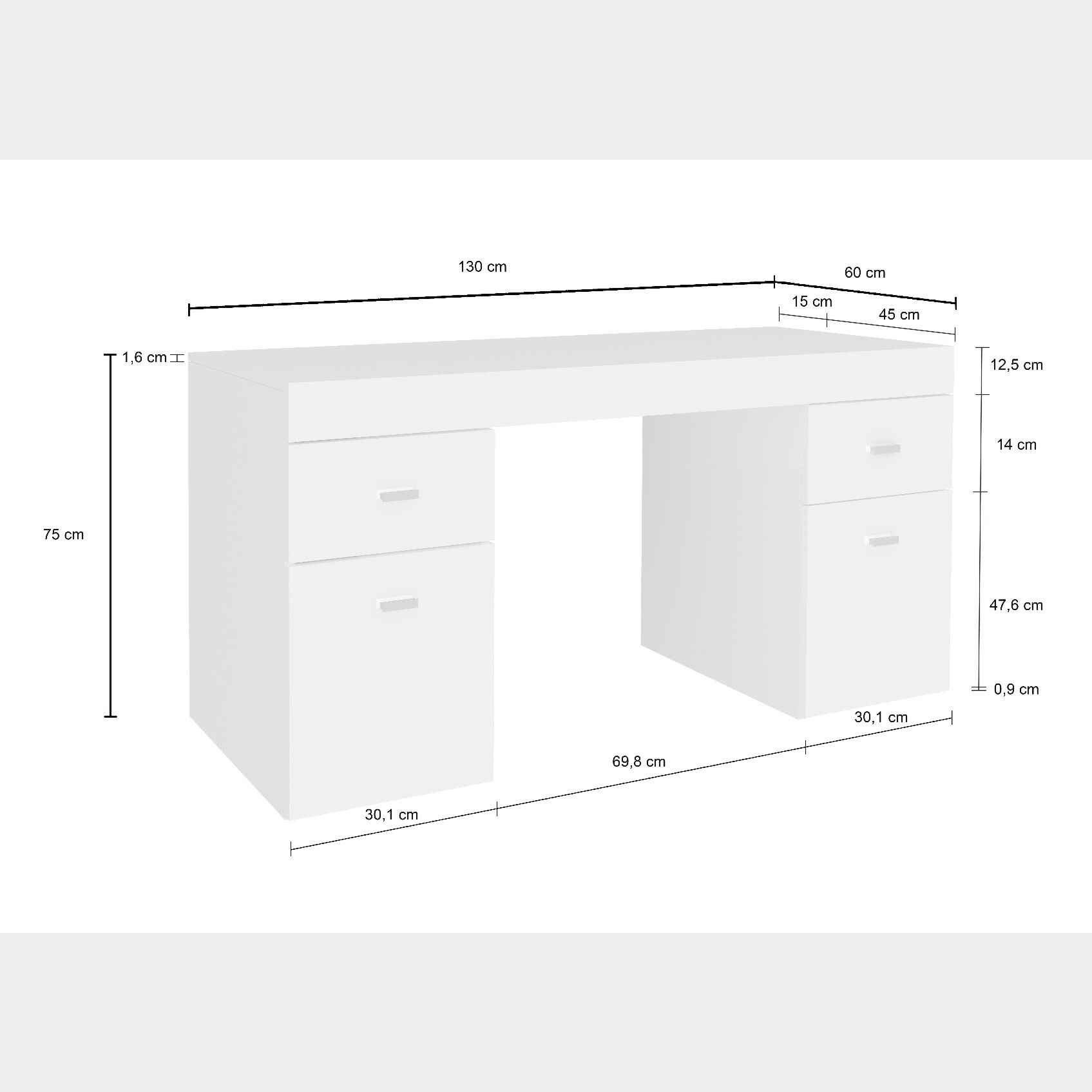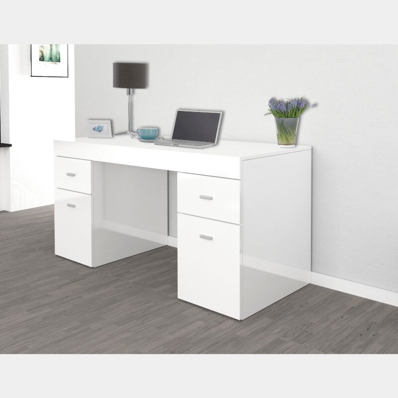 Scrivania 2 ante e 2 cassetti bianco larice e bianco lucido, made in Italy