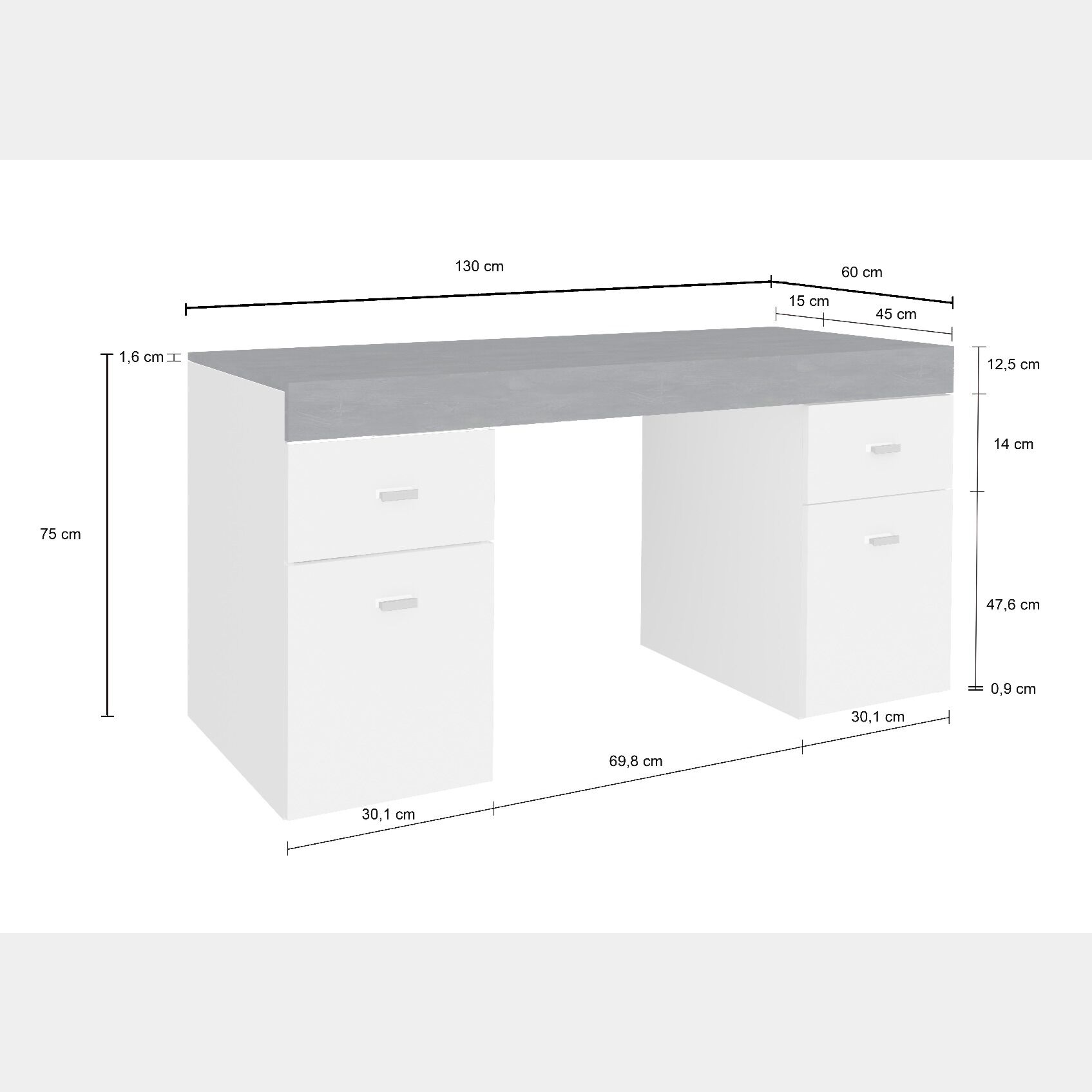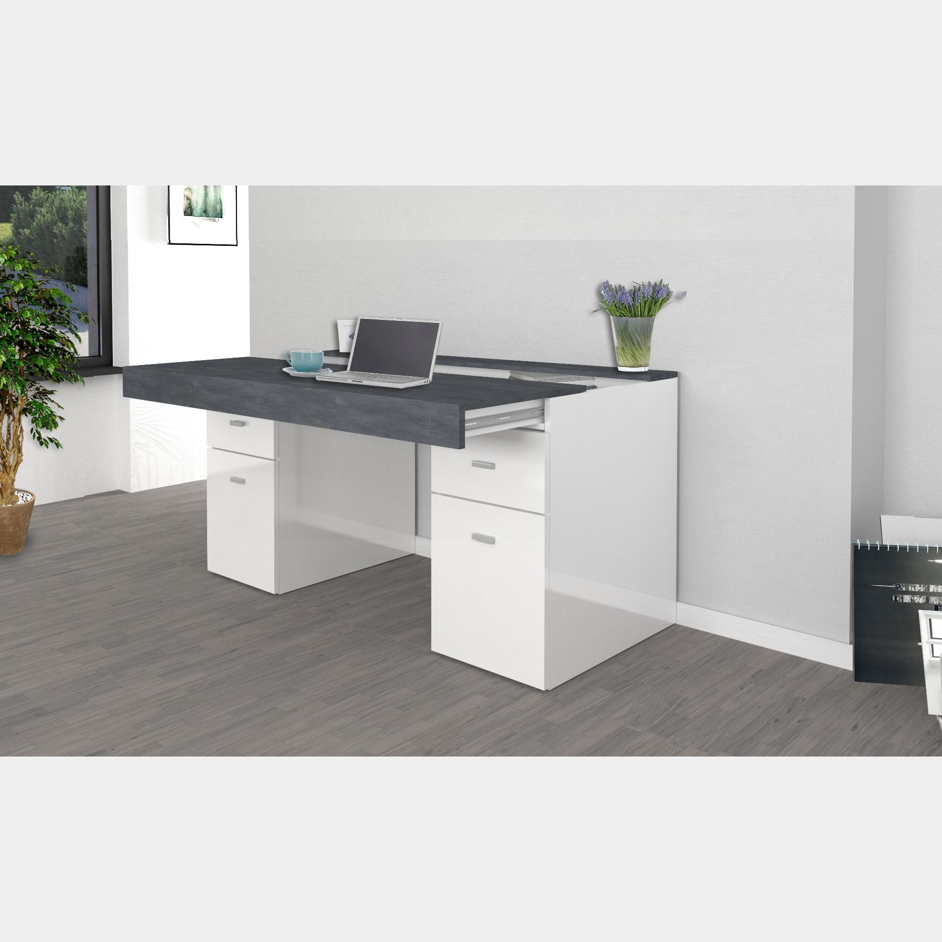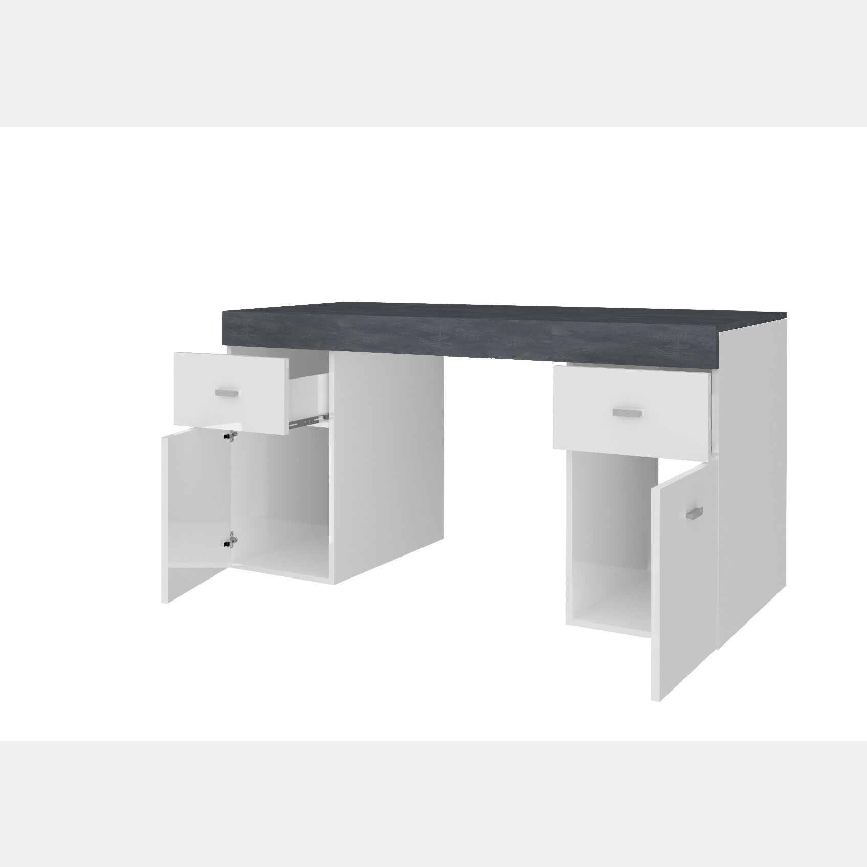 Scrivania 2 ante e 2 cassetti bianco lucido e ardesia, made in Italy