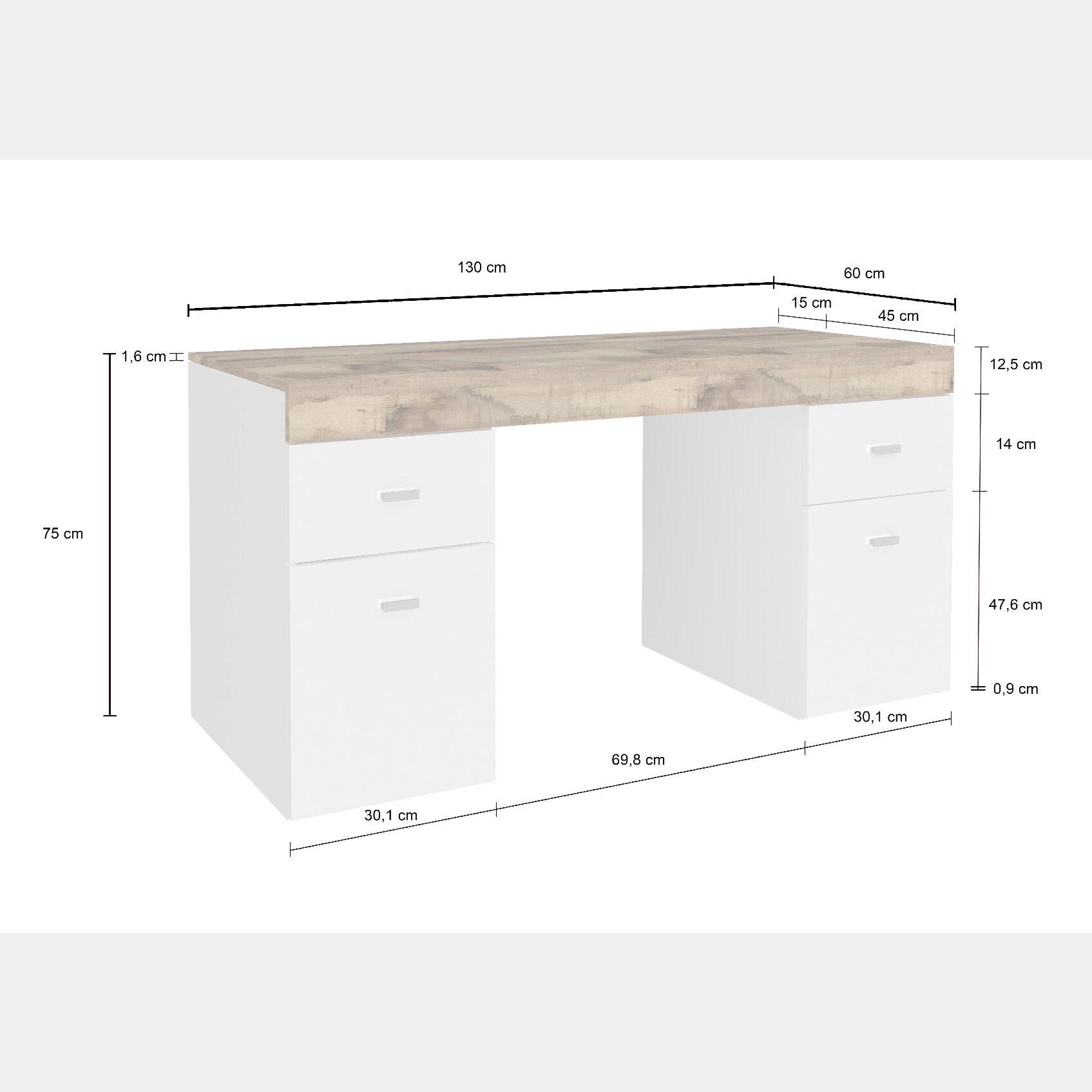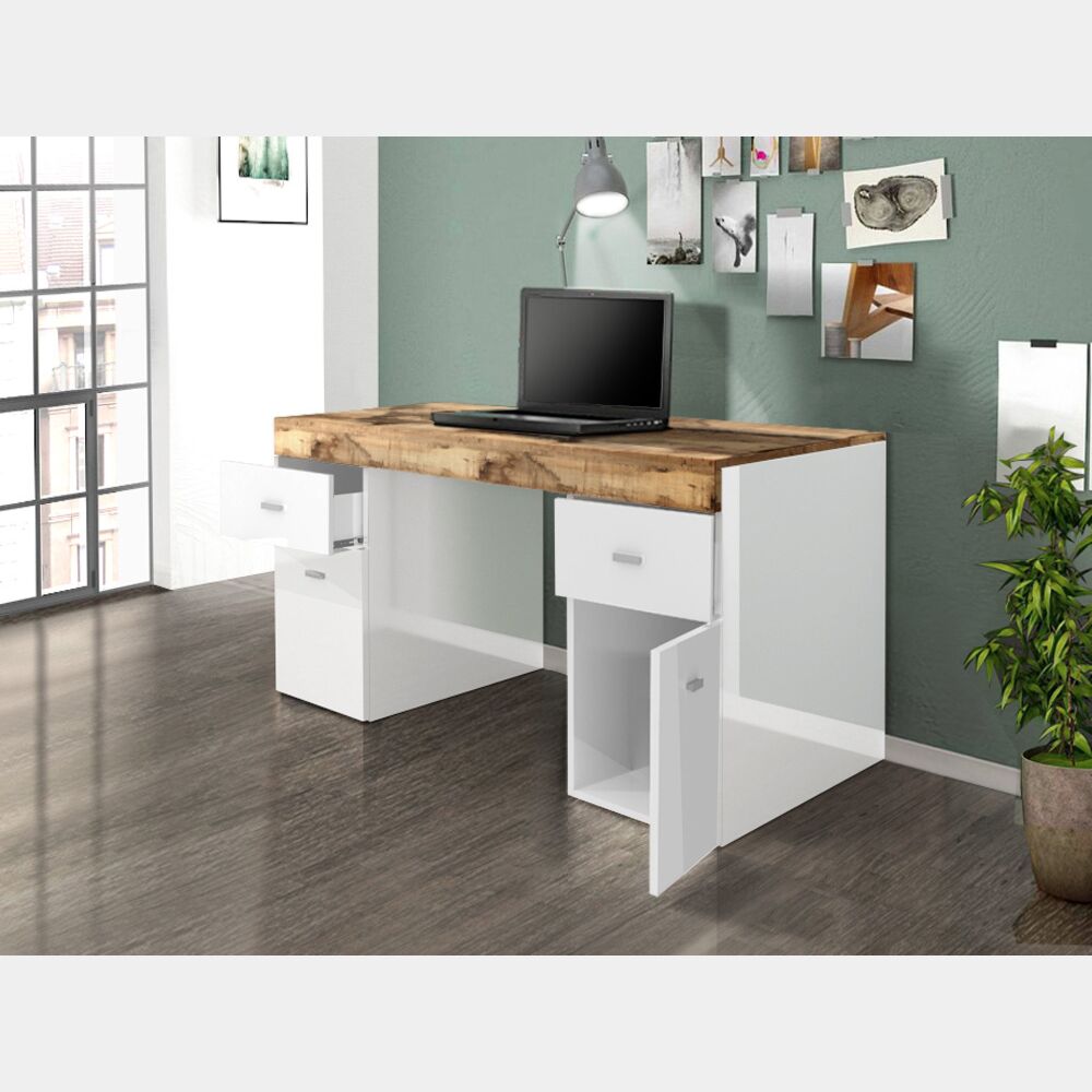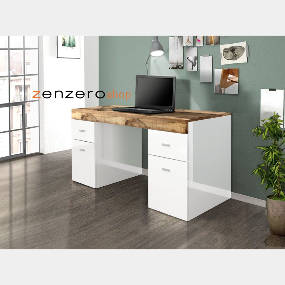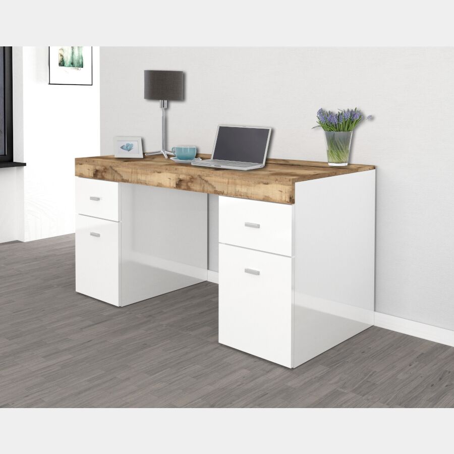 Pratica Scrivania da ufficio in finitura bianco lucido e pero, 2 ante e 2 cassetti, made in Italy.