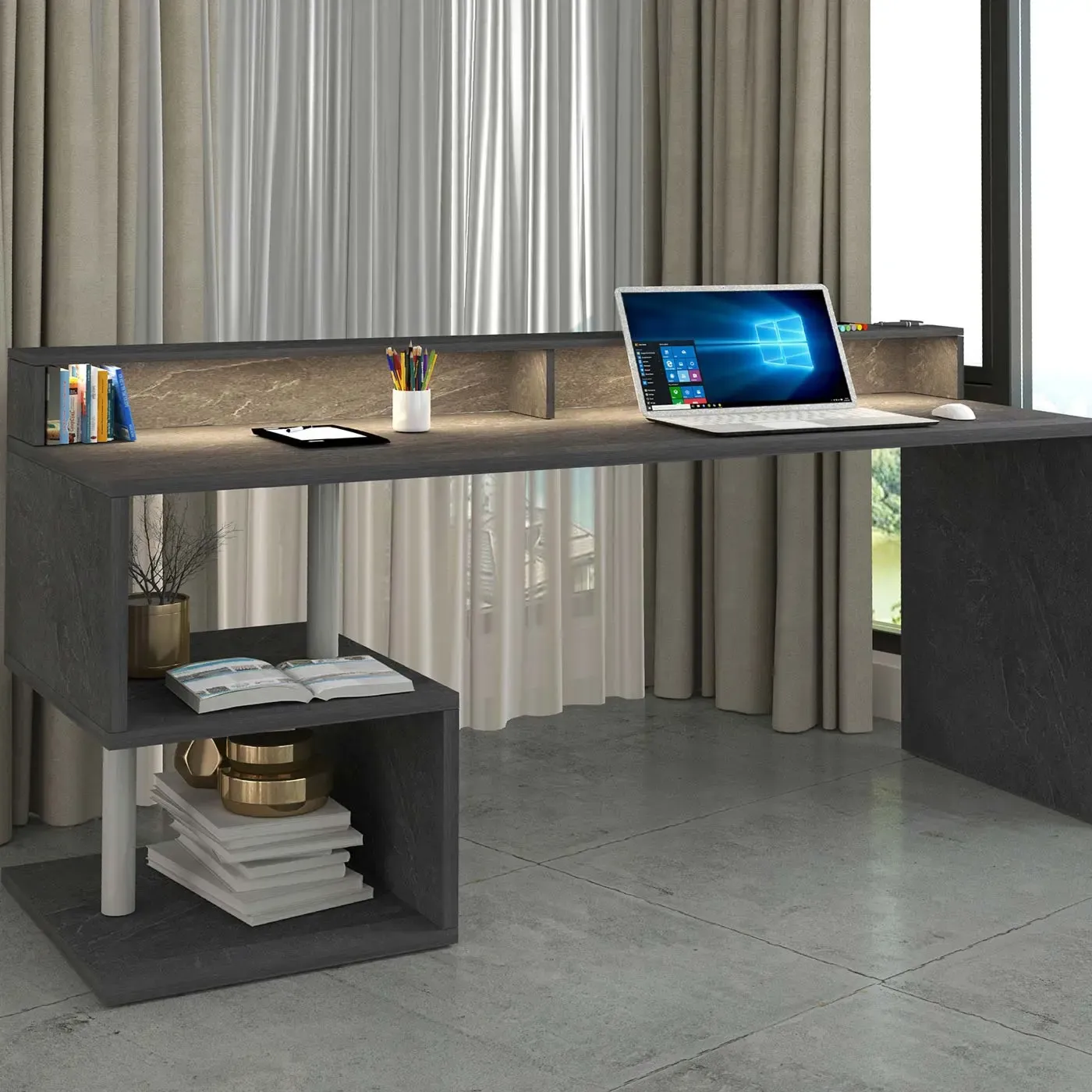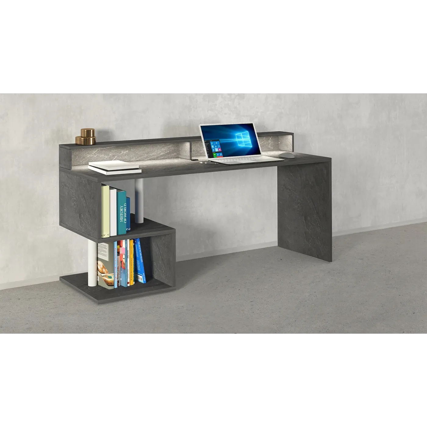 Scrivania 2 vani portaoggetti, 180x90x60 h cm, Ardesia
