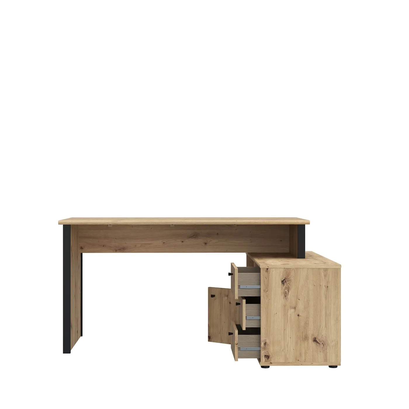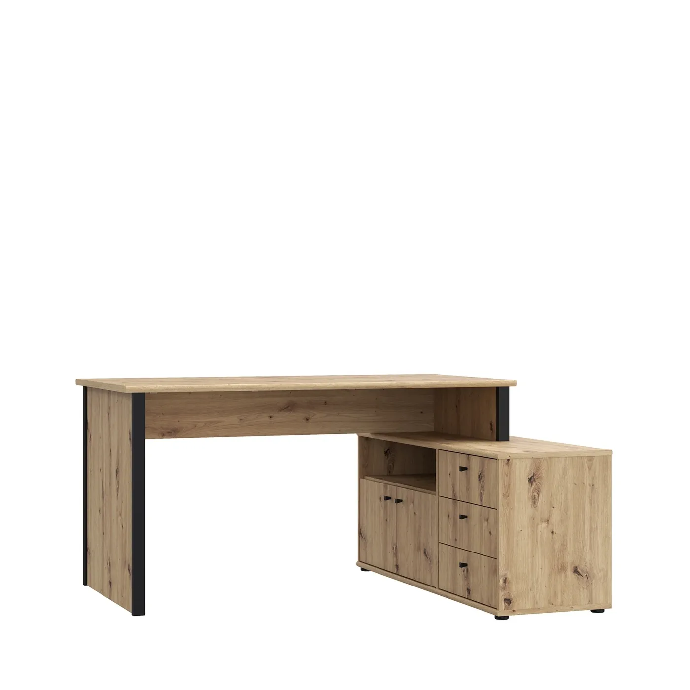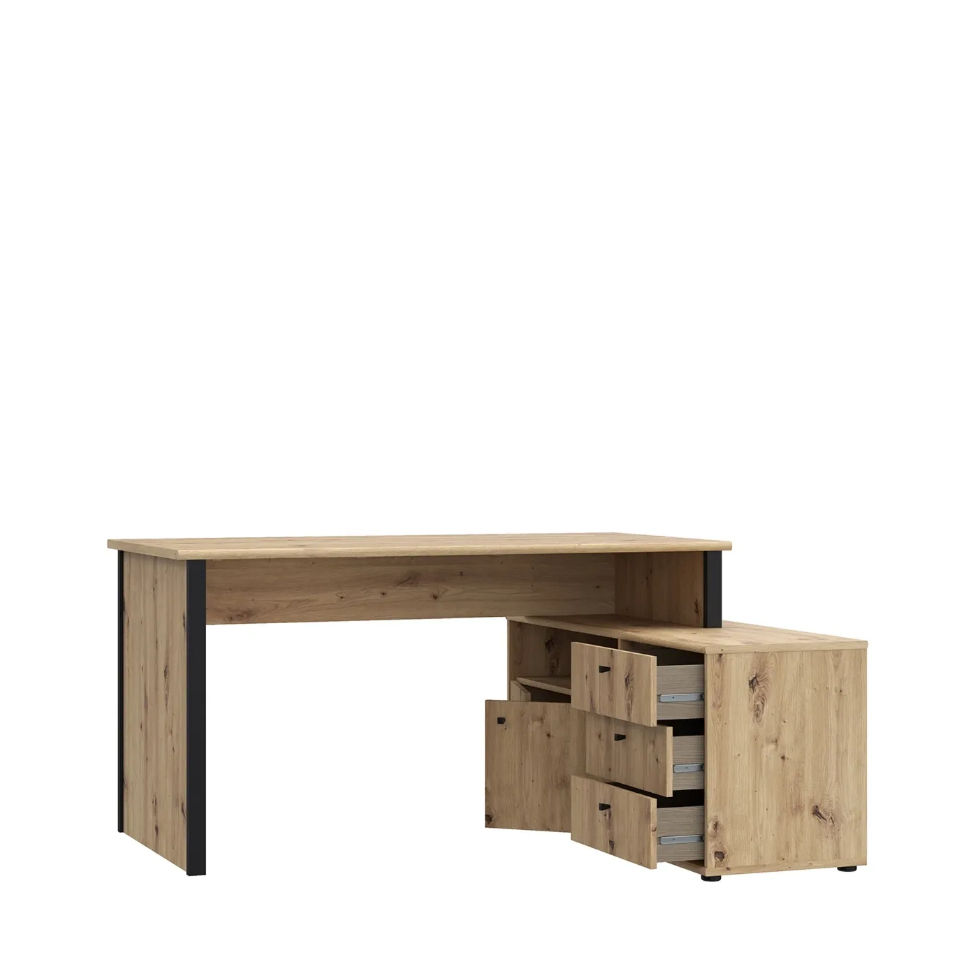 Una scrivania estremamente comoda e funzionale per svolgere il proprio lavoro, il quale viene agevolato dai confort che essa è in grado di offrire, ovvero i 3 cassetti, lo spazio interno celato da due piccole ante e l'ampio vano a giorno.