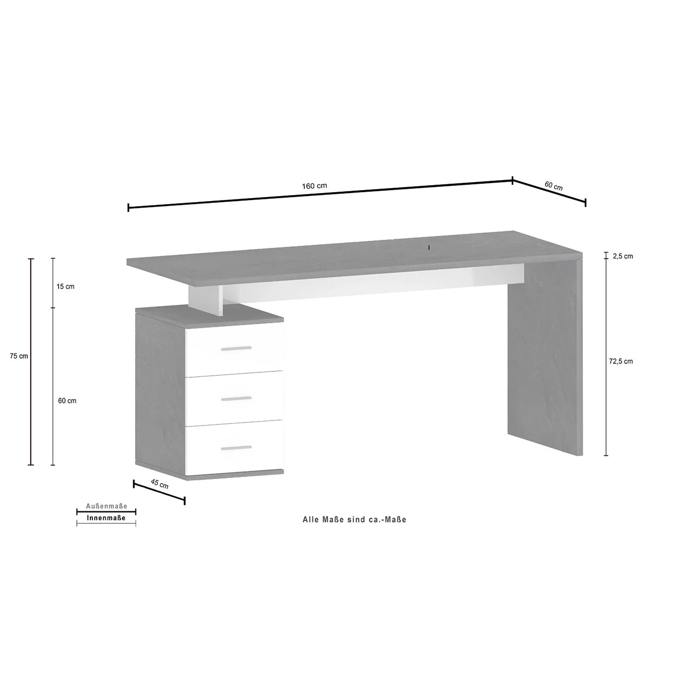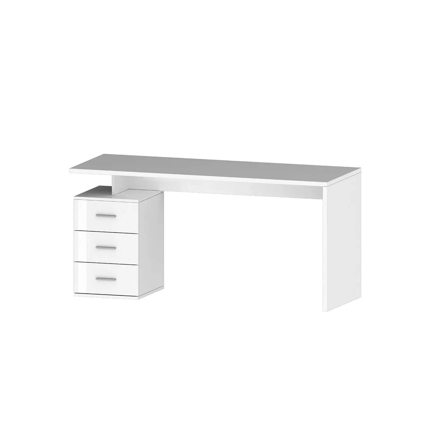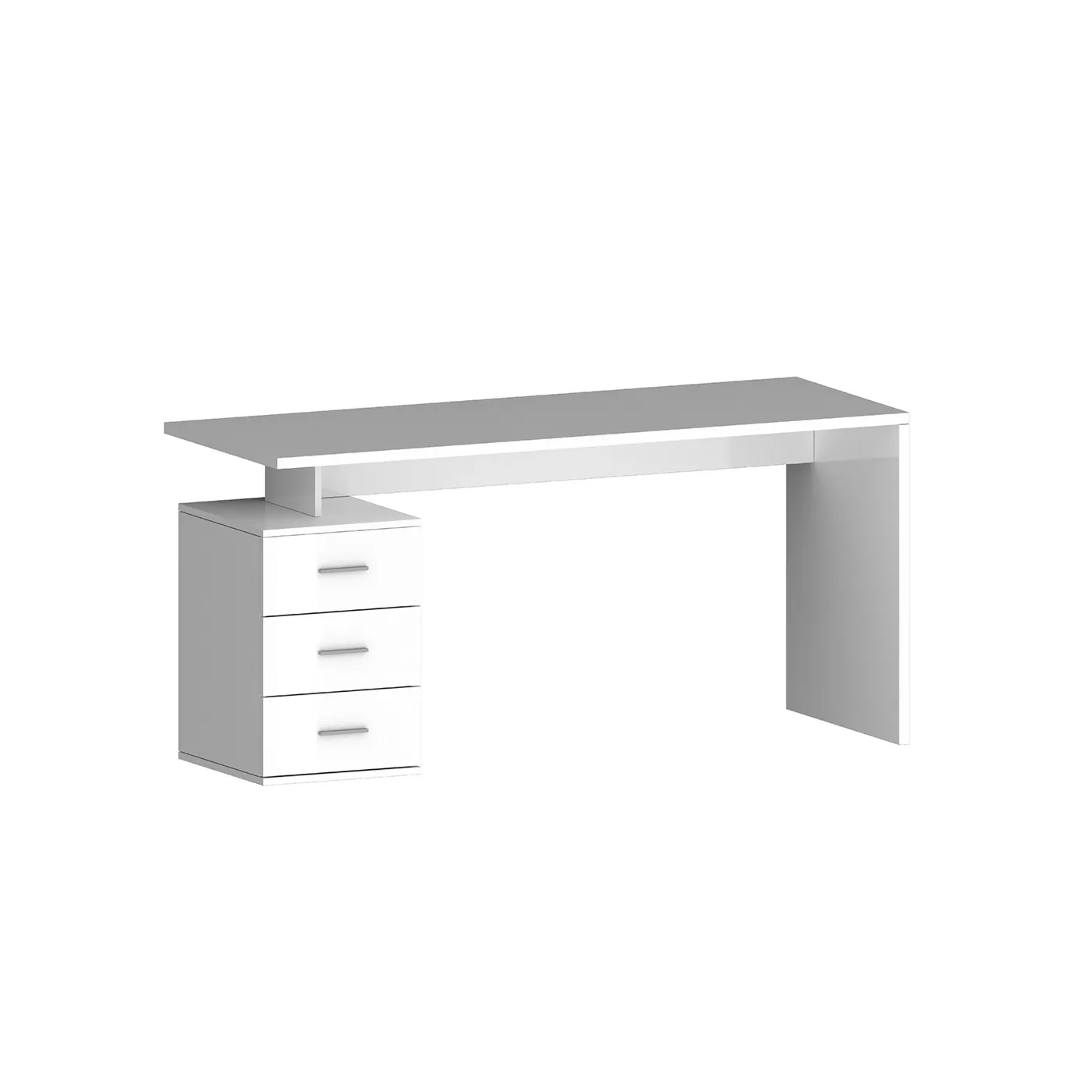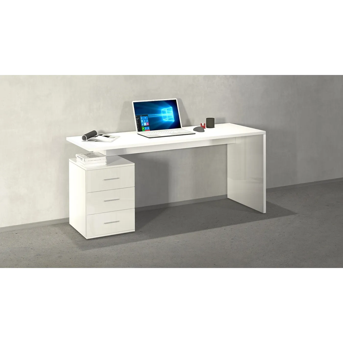 Scrivania 3 cassetti, 160x75x60 h cm, Bianco laccato lucido