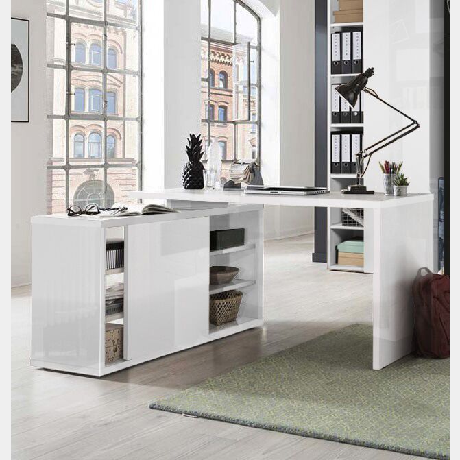 La scrivania ad angolo Point in finitura Bianco Lucido è dotata di una cassettiera con anta scorrevole, utile per ordinare i tuoi documenti. Si adatta ad ogni tipo di ambiente, inoltre unisce l'eleganza del design ed il fascino moderno offrendo così un risultato unico e rendendo la vostra zona studio di tendenza.