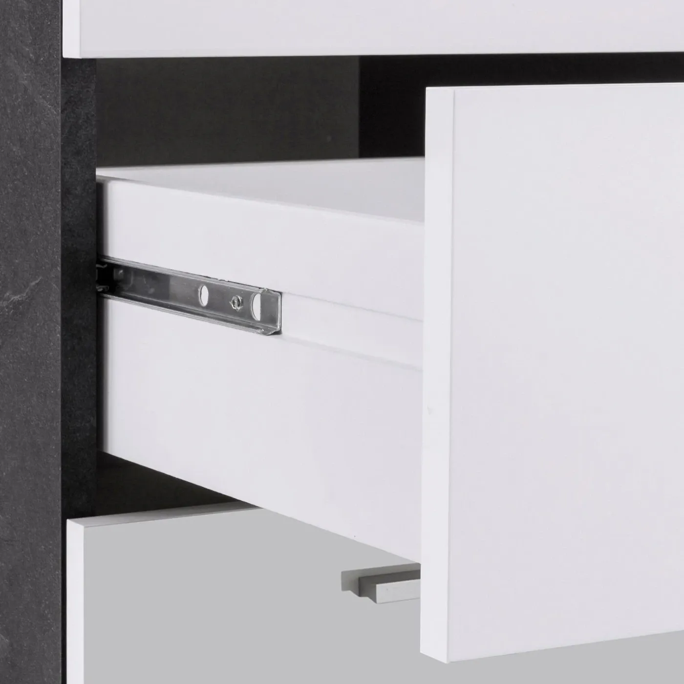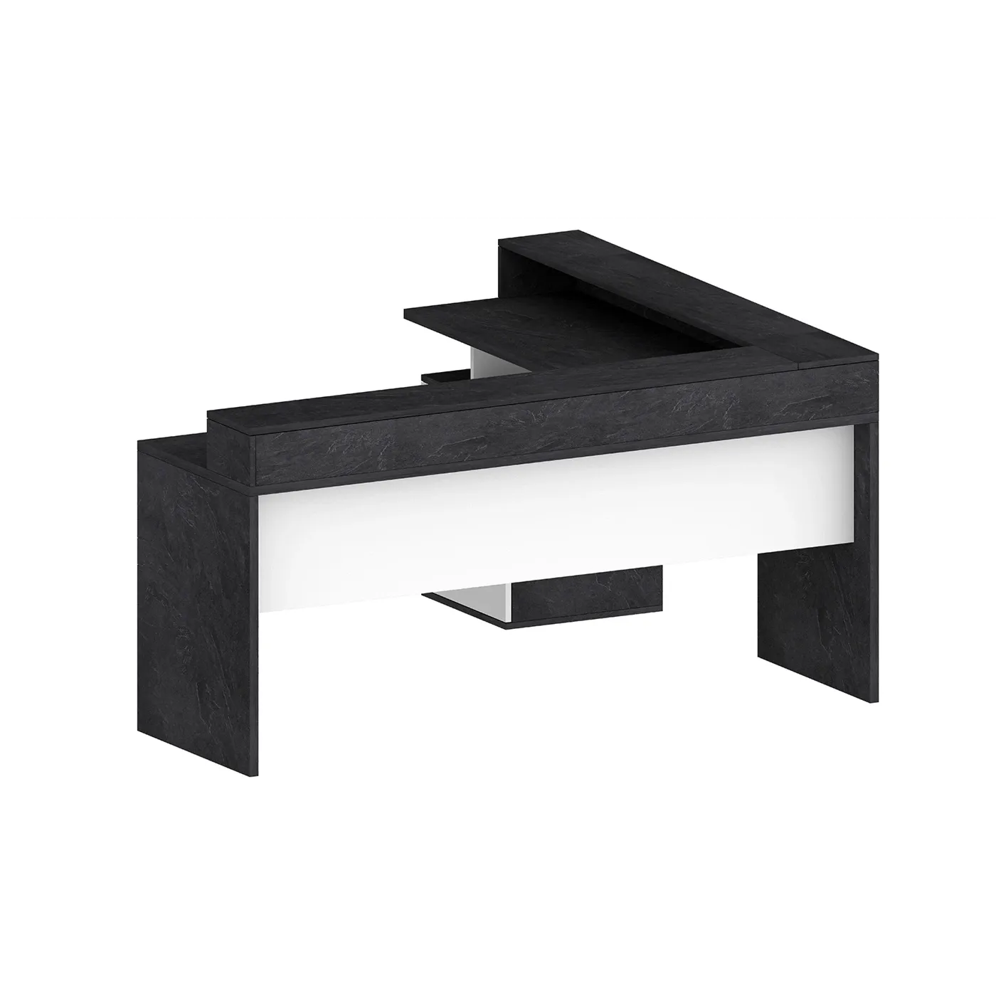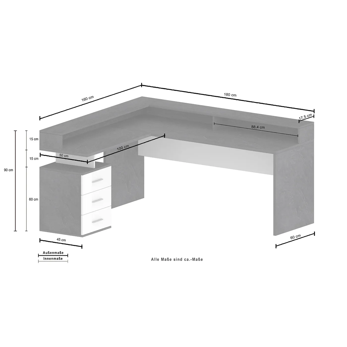 Scrivania angolare 3 cassetti, 180/160x90x60 h cm, Bianco laccato lucido e Ardesia