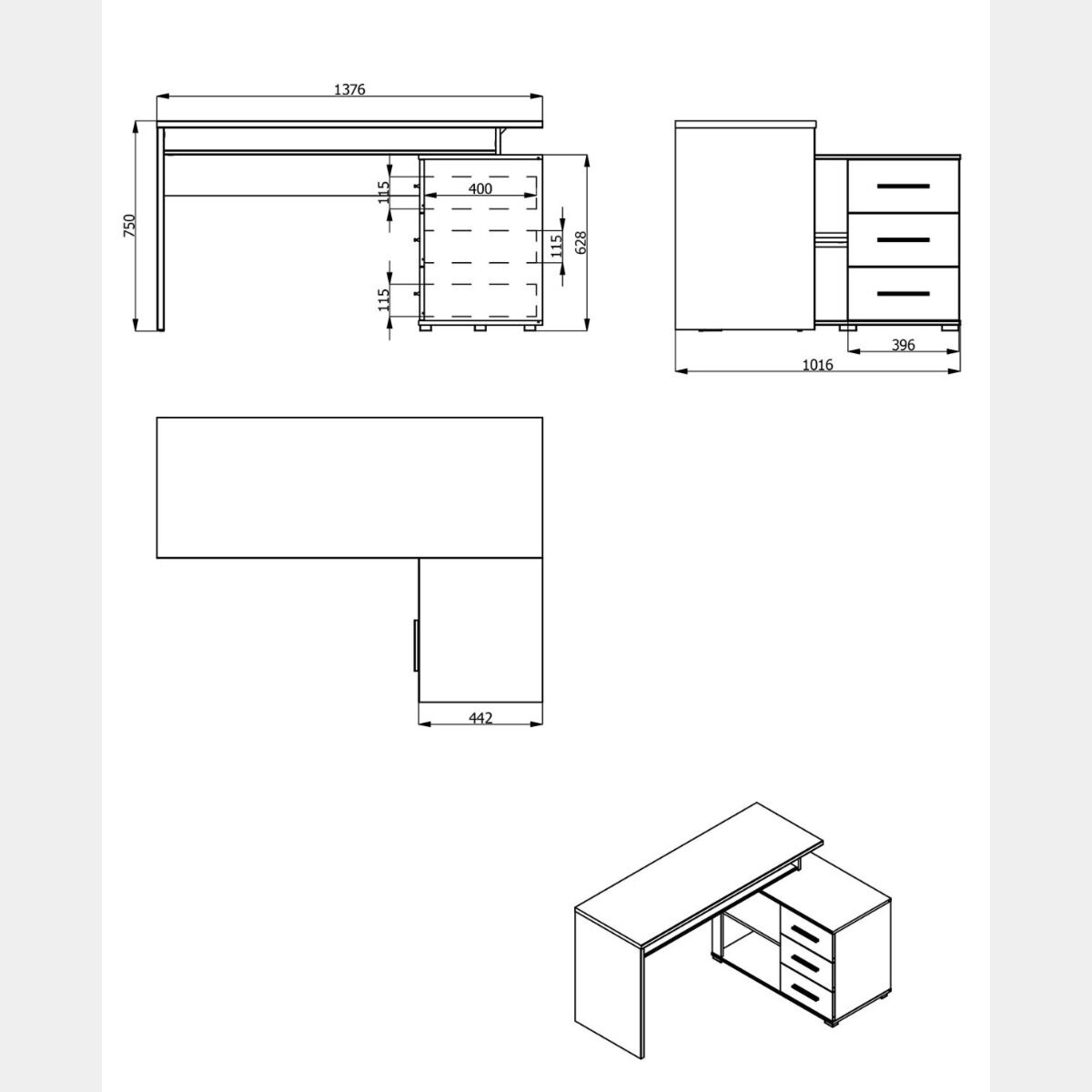 • Misure scrivania: L.137,6/101,6 H.75 P.44,2 cm